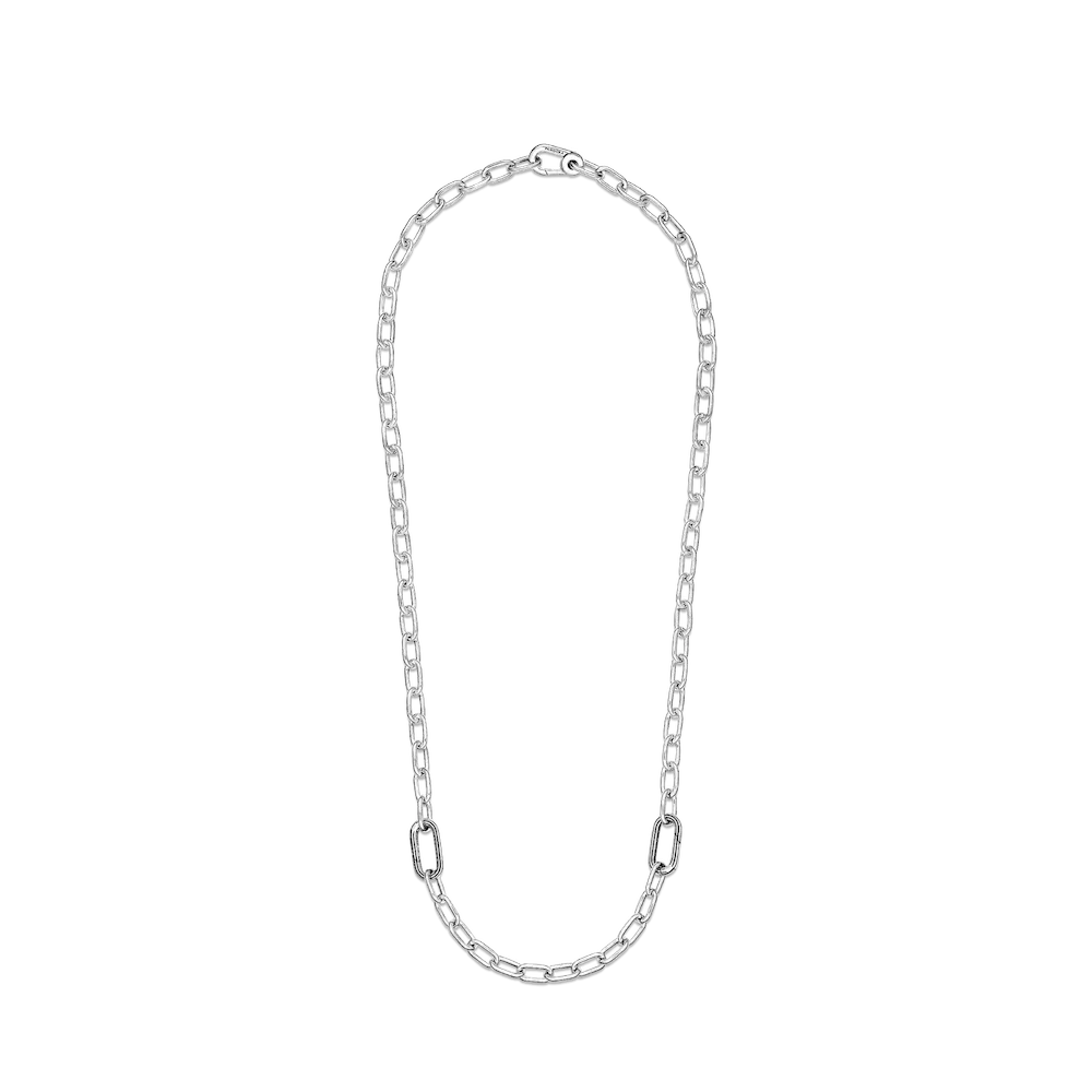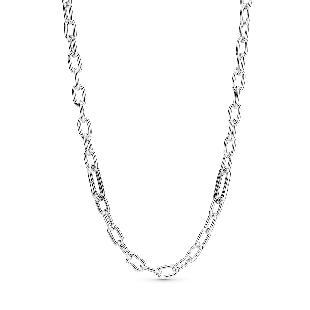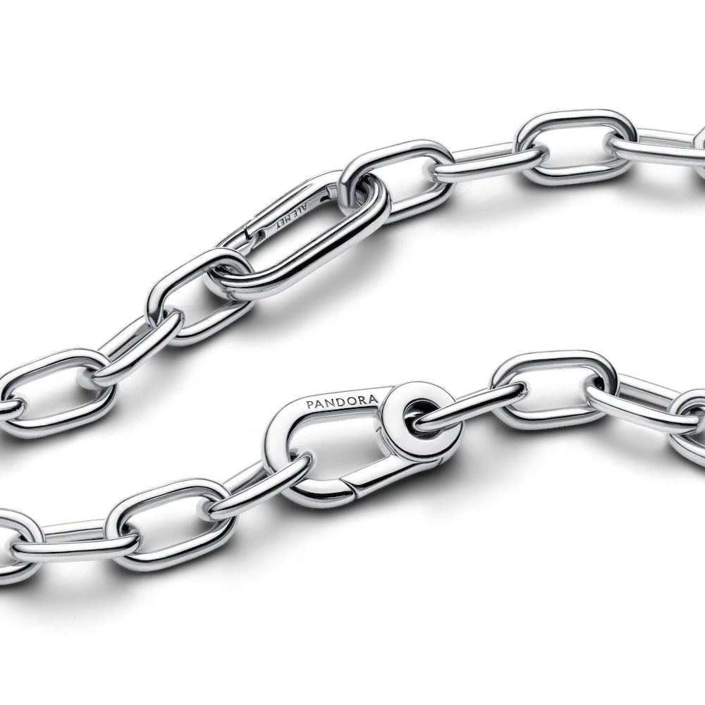 Your statement jewellery starts here: this sterling silver Pandora ME Small-Link Chain Necklace has endless styling possibilities to choose from, with two openable links at the front – designed with grooved surfaces to set them apart – twelve links between each openable link and a small carabiner clasp closure. You can keep the original length, make your link chain longer or turn it into a choker, all by adding and taking away links to suit you. Once you’ve customised your link chain, remix it with meaningful medallion charms and the mini dangle charms on the openable links to tell your story. Please note this item is only compatible with Pandora ME jewelry and will not fit our other collections.