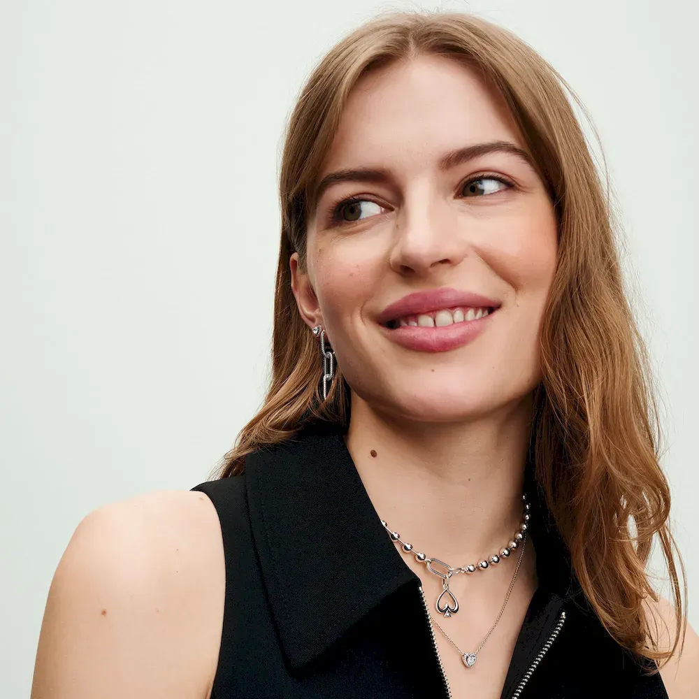 Give your chains a glow up with this Pandora ME Styling Pavé Double Link. Made up of two interlocking links set with two rows of round brilliant-cut clear cubic zirconia, each is hand-finished in sterling silver. Style yours between openable links on your Pandora ME link chain bracelets or necklaces, or hang on a pair of hoops for a unique statement. Styling tip: the length of a double link matches the length of two regular links, four small interlocking links or one styling link – for easy personalisation. Please note this item is only compatible with Pandora ME jewelry and will not fit our other collections.