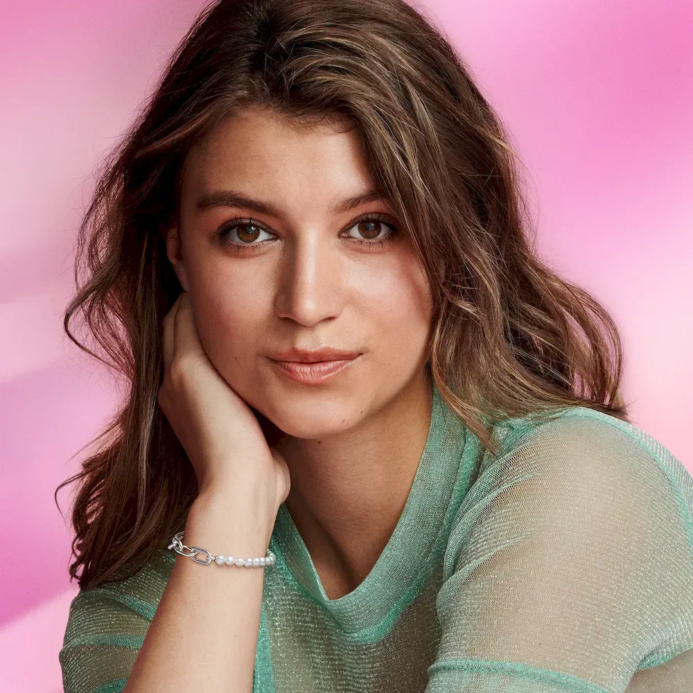 Pearls, reimagined: this sterling silver Pandora ME Treated Freshwater Cultured Pearl Bracelet takes the iconic pearl and turns it into a design with endless personalization potential. The bracelet features two openable links – designed with grooved surfaces to set them apart – that link to a row of ethereal treated freshwater cultured pearls and a carabiner clasp closure. Customize your link chain first: one set of interlocking styling links can be swapped out for one styling double link or one styling link – keep the original length or adjust it to suit you. Once you’ve curated your link chain, style up to two medallion charms on your openable links, or up to eight mini dangle charms to show the world who you are. NOTE: the relevant treatments for treated freshwater cultured pearls are bleaching or dyeing and luster enhancement. Discover how to mix and re-mix your Pandora ME look here.