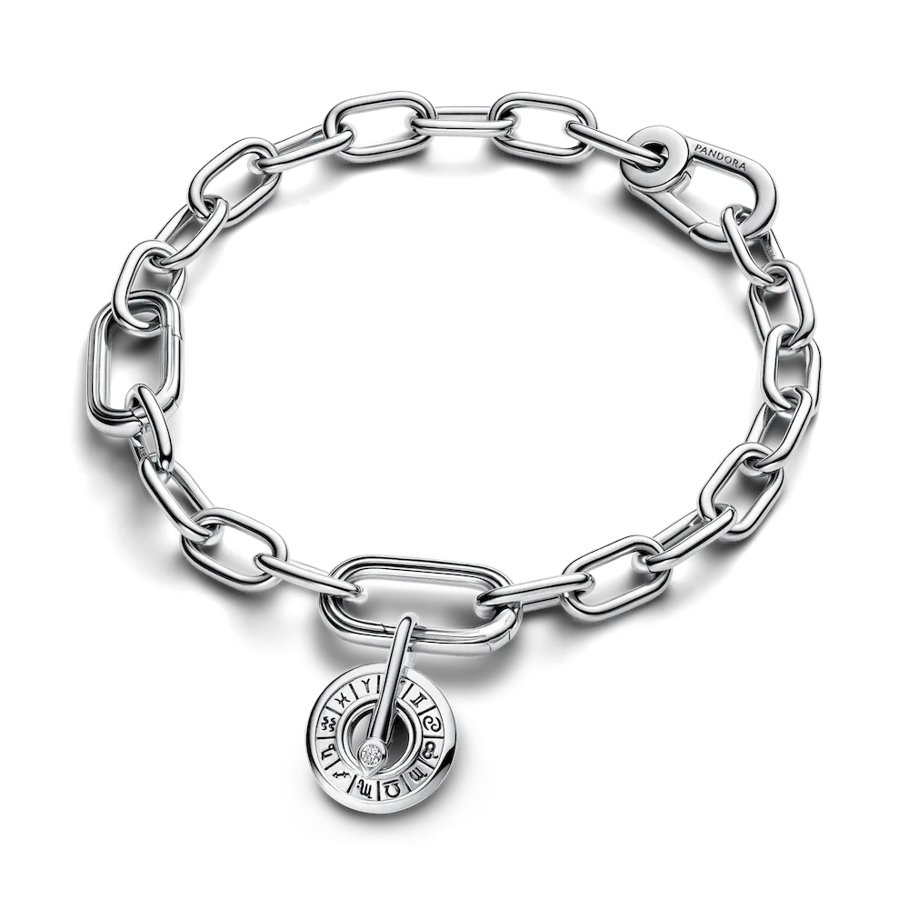Embrace your sun sign when you wear the Pandora ME Zodiac Wheel Medallion Charm. Featuring engraved symbols of all 12 zodiac signs, this sterling silver zodiac charm has the ability to spin. The bail has a teardrop-shaped pointer dangle with a sparkling stone, while the reverse side of the charm features a circle of microbeads. With intricate details and cool functionality, this zodiac medallion charm lets you spin the dial anytime you want to align your mood or your look. Compatible with Pandora ME and Pandora Moments.