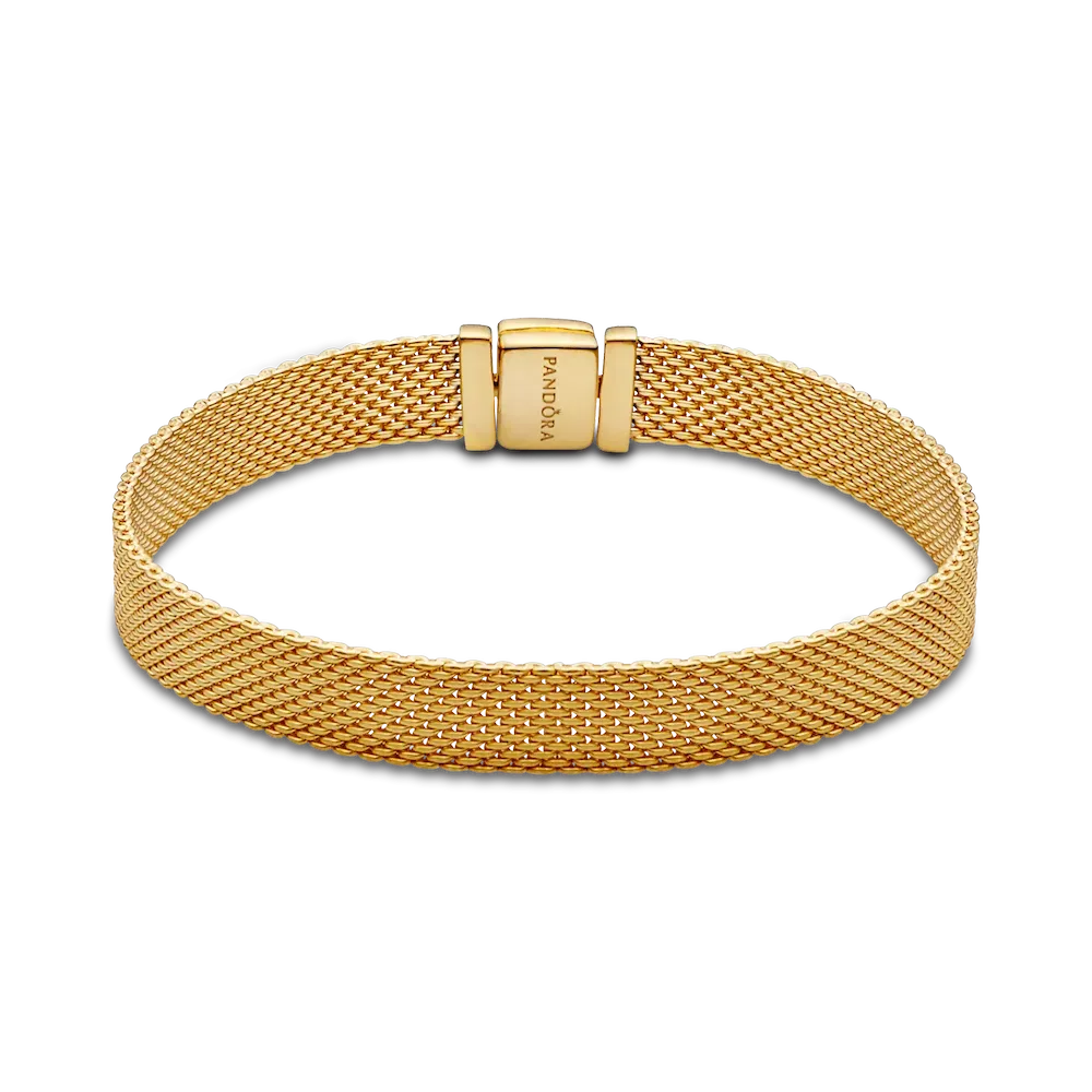 Reflecting modern feminity, the clean, fluid lines of the new Pandora Reflexions bracelet let you express how it feels to be you. This versatile 14k gold-plated bracelet is perfect for wearing alone or with the corresponding clip charms.