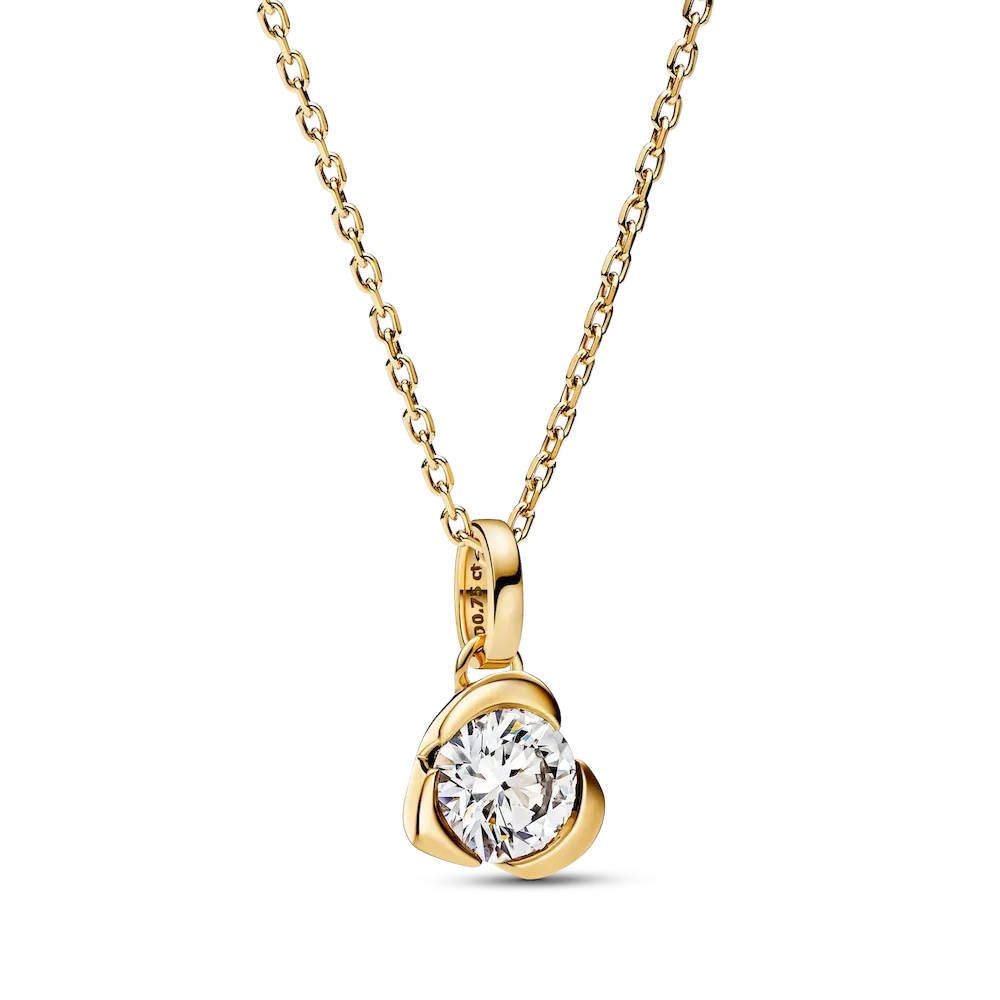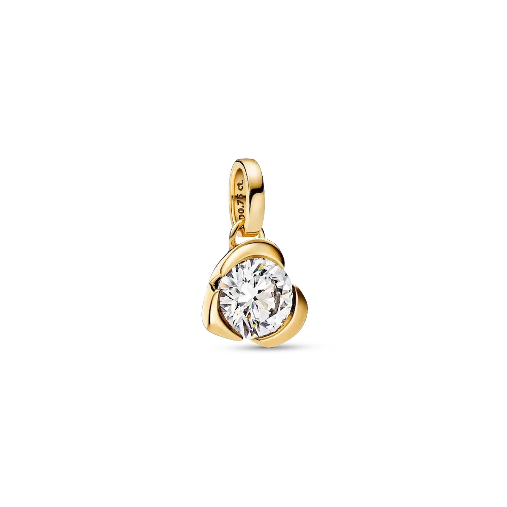 Feel the love with the Pandora Talisman 14k Gold Lab-grown Diamond Heart Pendant. This 14k gold pendant features a unique setting that creates a heart motif with a 0.75 carat lab-grown diamond sparkling at its center. On the back of the pendant, a heart-shaped cut-out echoes the shape of the setting and lets the light shine through to maximize sparkle. A universal symbol of love, the heart shape makes this pendant the perfect gift to represent a special connection – or an affirmation of the love you have for yourself. Each Pandora Lab-grown diamond is treated with a post-growth color enhancement called annealing.