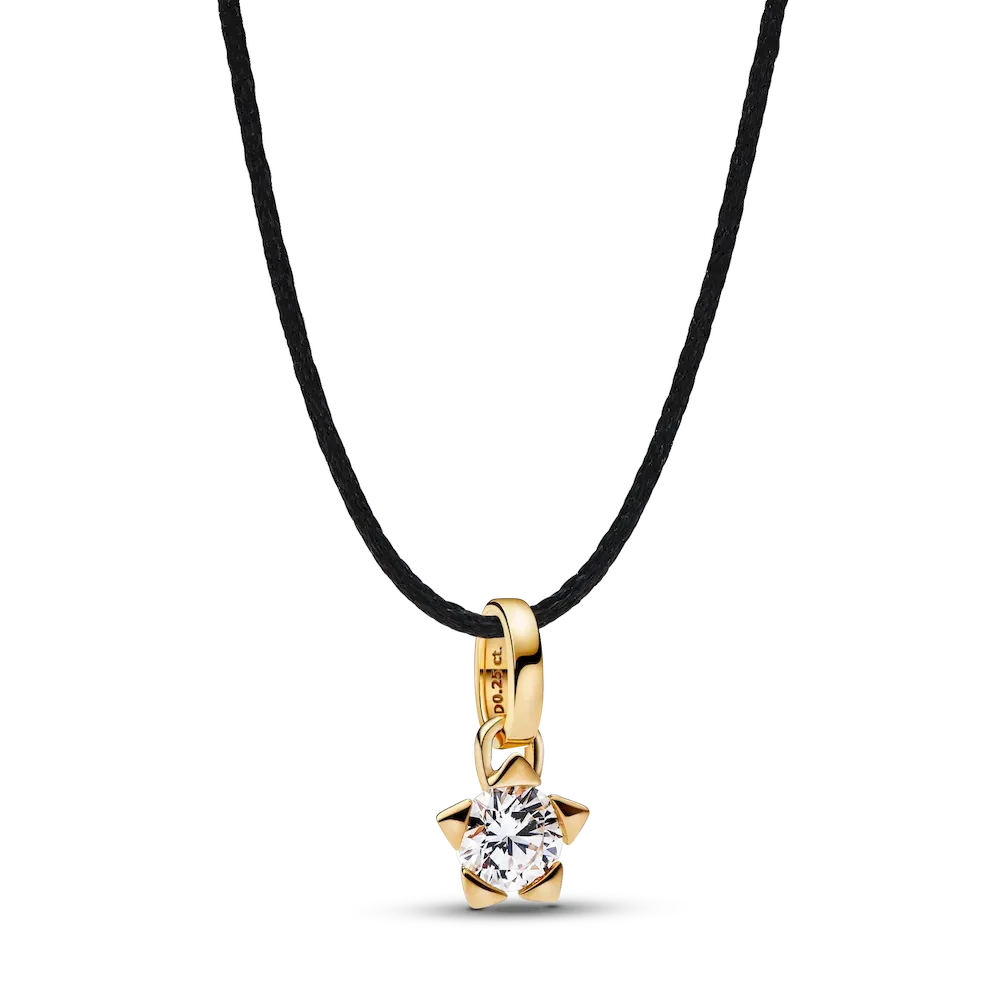 Look to the stars with the Pandora Talisman 14k Gold Lab-grown Diamond Star Pendant. Stars have been the stuff of legend for as long as we have told stories, often representing hope, guidance and our wishes and dreams. This 14k gold pendant embodies this celestial inspiration, inviting you to give it your own meaning. Five triangular prongs create a star-shaped setting embracing a 0.25 carat round brilliant excellent cut lab-grown diamond. A star-shaped cut-out on the back lets the light shine through, capturing the sparkle of starlight. Each Pandora Lab-grown diamond is treated with a post-growth color enhancement called annealing.