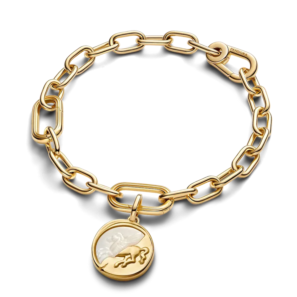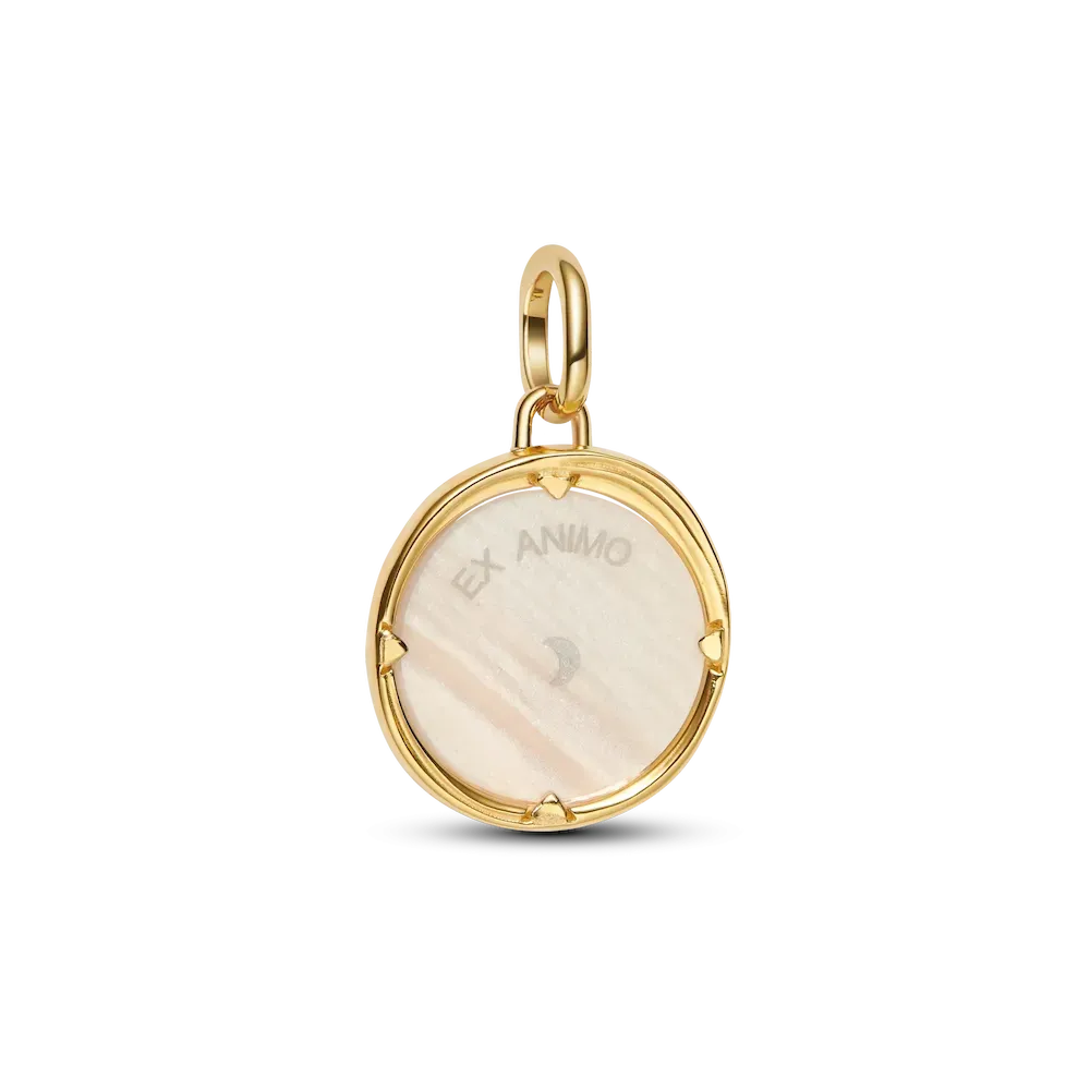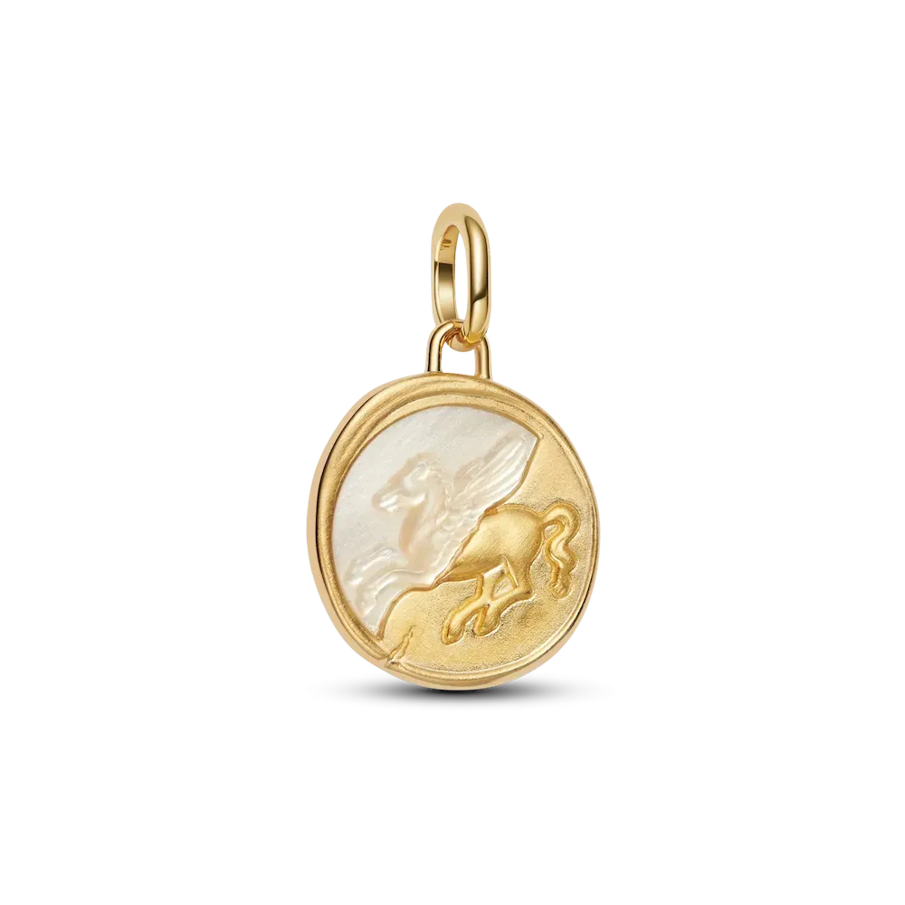 Love is in the 14k gold-plated details. A mythical medallion made with a new pearlescent finish. With Pegasus on the front and the Latin message ‘EX ANIMO’ — ‘FROM THE HEART’ on the back, you’ve just found your wings.