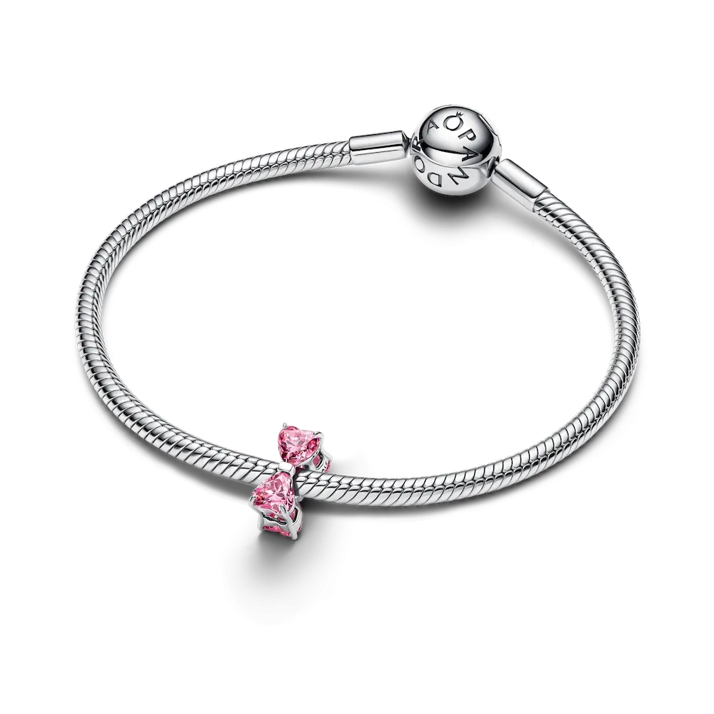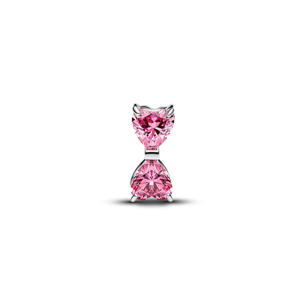 Put a bow on it. Crafted in sterling silver with sparkling pink heart-shaped cubic zirconia, this delicate charm symbolizes life’s most beautifully tied moments. The perfect finishing touch to your holiday look.