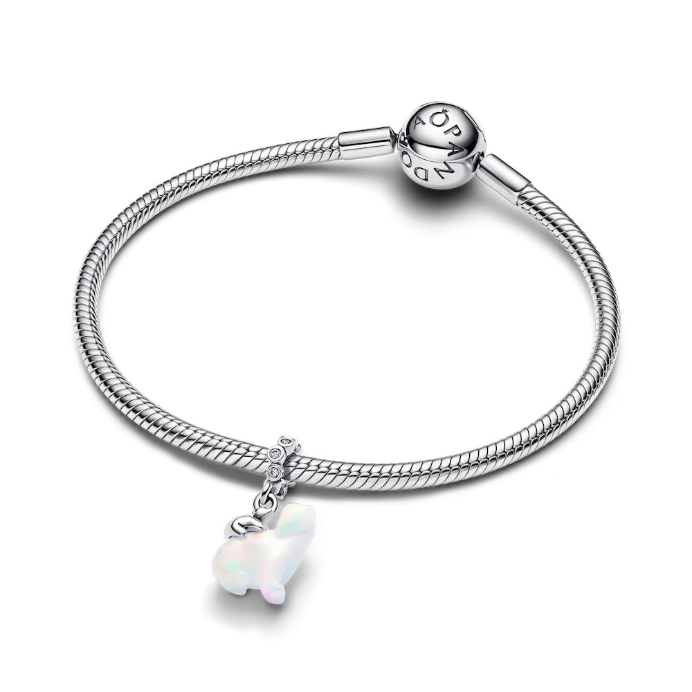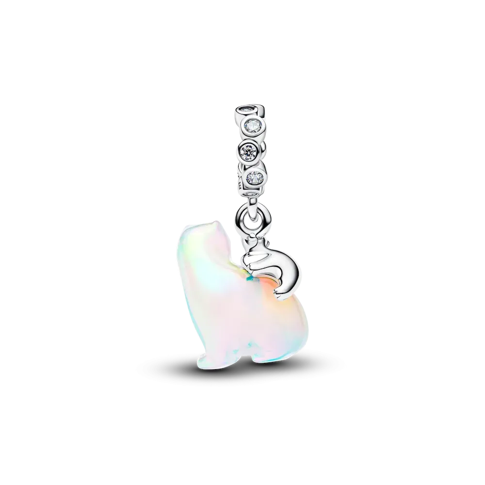 Inspired by unbreakable bonds, this sterling silver polar bear charm embodies love and connection. Crafted from aurora lab-grown opal resin and cubic zirconia, the mother cradles her cub, a symbol of deep affection.