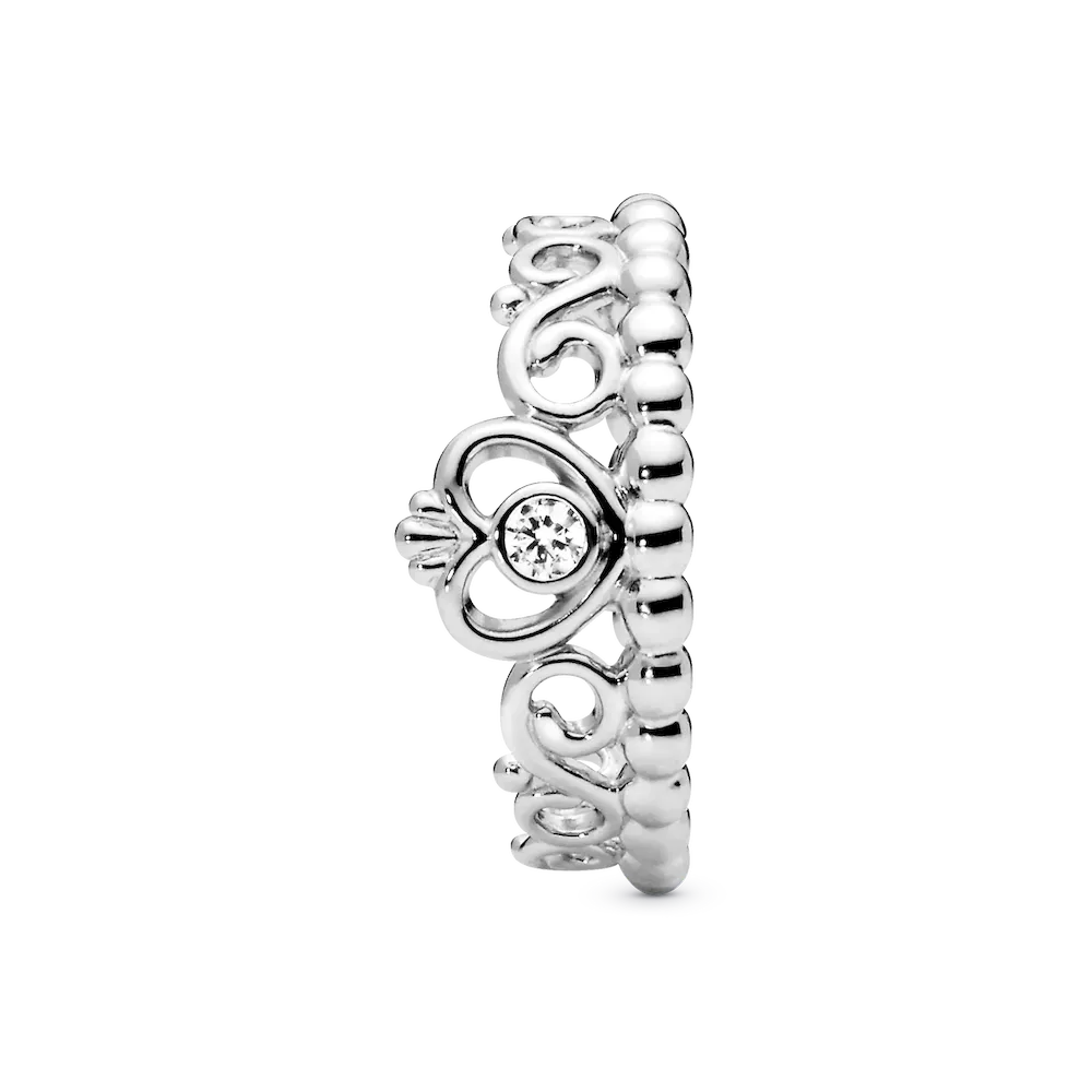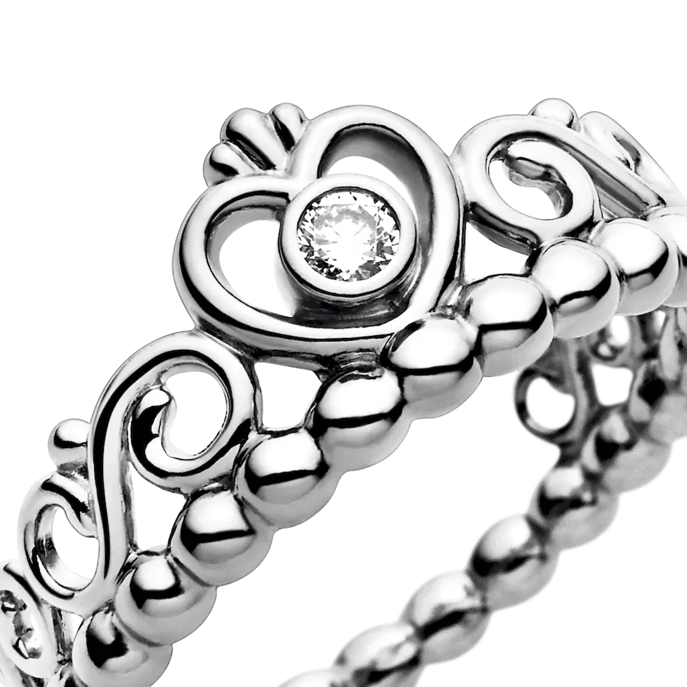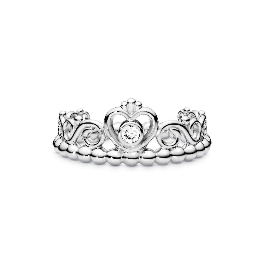Feel like a princess every day of the week with this magnificent tiara-inspired ring. Exquisitely crafted in sterling silver, this enchanting style features a heart-shaped tiara design accented with a single shimmering cubic zirconia stone. Showcase it on its own or pair it with other Pandora princess rings for a fairytale finish.