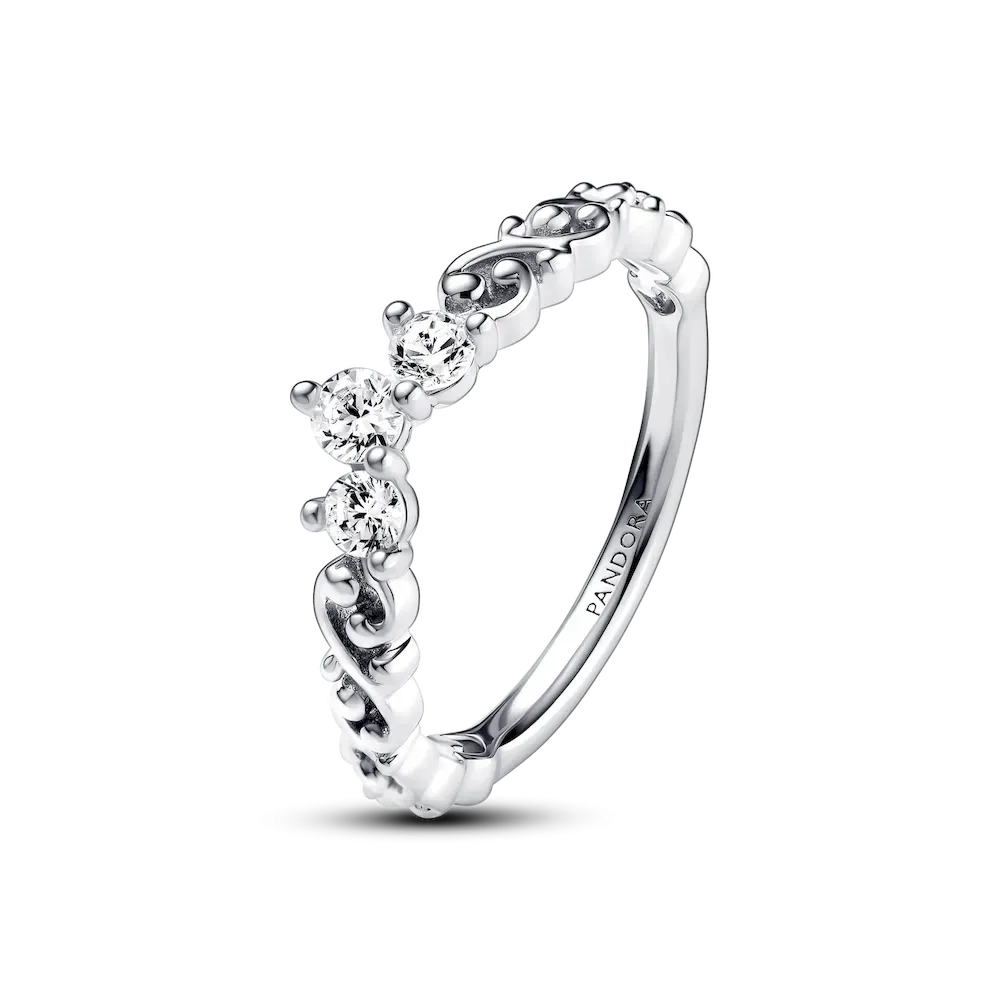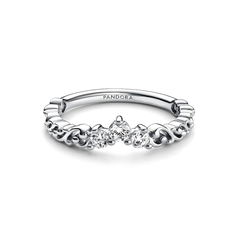 Add a touch of royalty to your looks with the Regal Swirl Tiara Ring. Crafted in sterling silver, this aristocratic piece features a tiara decorated with three sparkling stones and swirling filigree. Crown your hand with this majestic ring and treat yourself like a real queen.