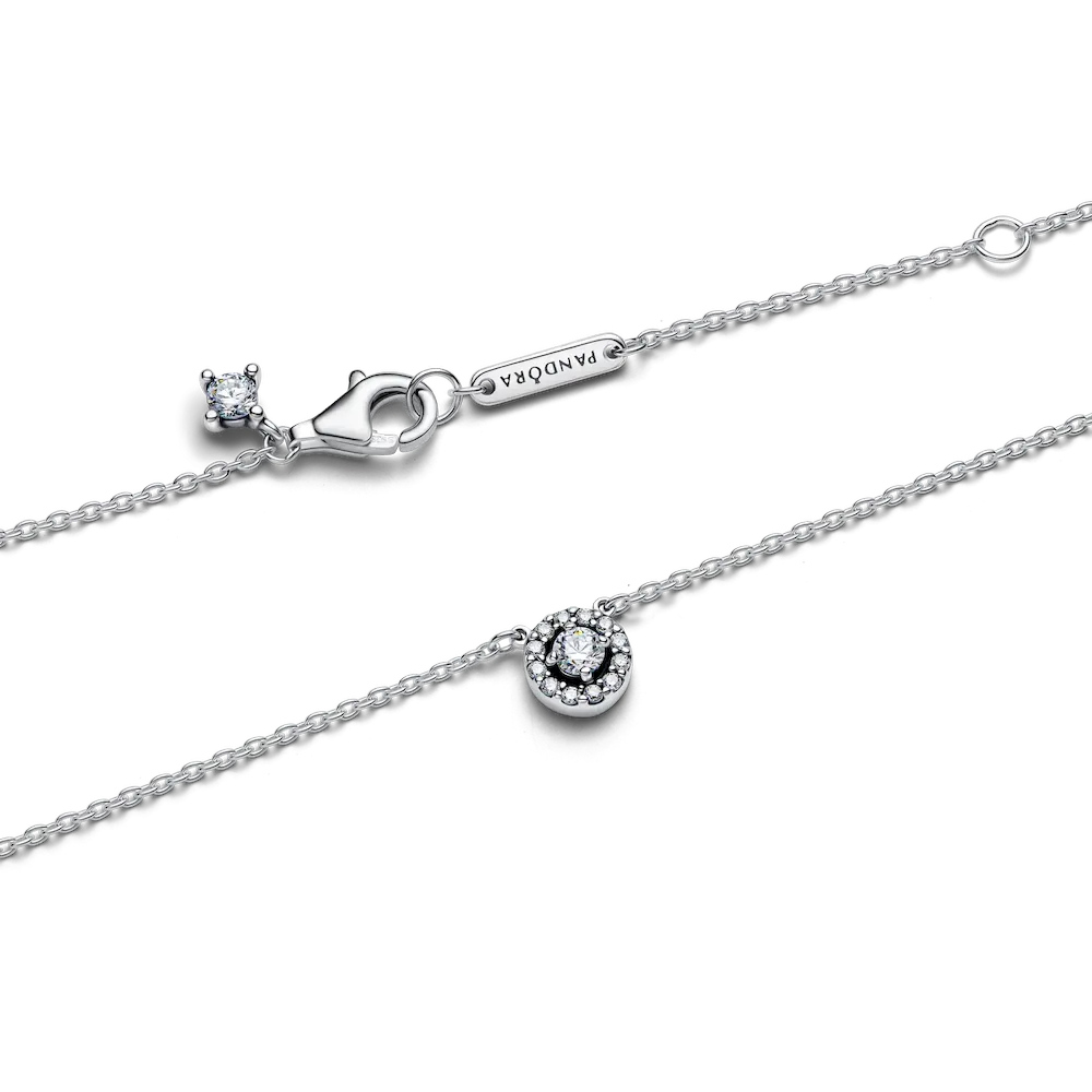 Channel timeless elegance with a pavé pendant. Set with a sparkling halo and a cubic zirconia, it features an adjustable chain with a dangling stone at its clasp to complete the look.