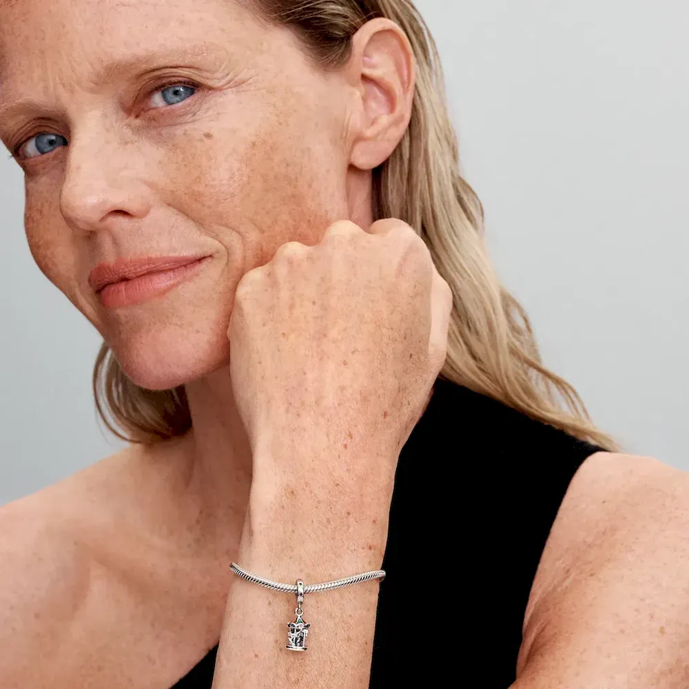 Celebrate the joy of the season with the Seasons Greeting Charm Trio, a festive set of three intricately designed charms. The carousel dangle charm, crafted in sterling silver, features Santa and his reindeer spinning beneath glittery enamel and sparkling stones, with a heartfelt engraving,
