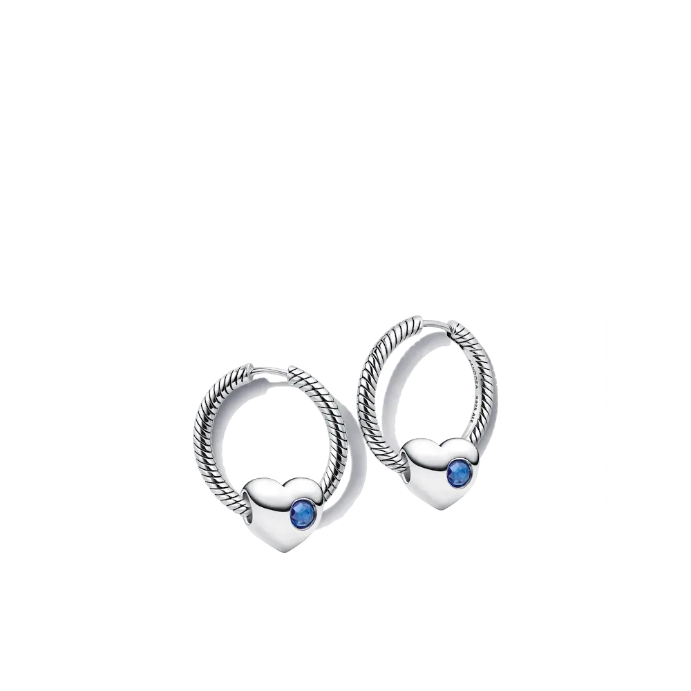 This set includes sterling silver hoop earrings featuring our signature snake chain pattern and an engravable heart charm with a flush-set blue man-made crystal for September. Add a heartfelt message and make it yours.