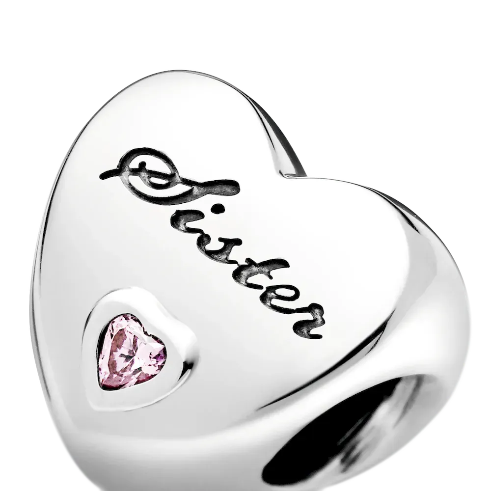 Pandora Moments charms are made for you to express the things you love – something, somewhere or someone. Made to celebrate the bond between siblings, our sterling silver family charm is shaped as a heart. Polished to a high shine, the simple yet meaningful style is trimmed with heart-shaped pink stones and the engraving
