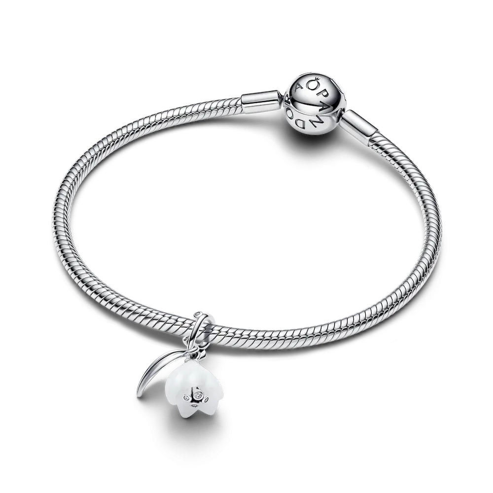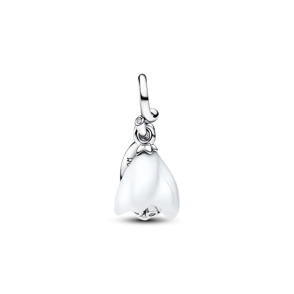 Bloom with courage – and carry the reminder with you. This sterling silver charm features a snowdrop flower in white Murano glass, sparkling cubic zirconia and a dangling leaf engraved with the same message.