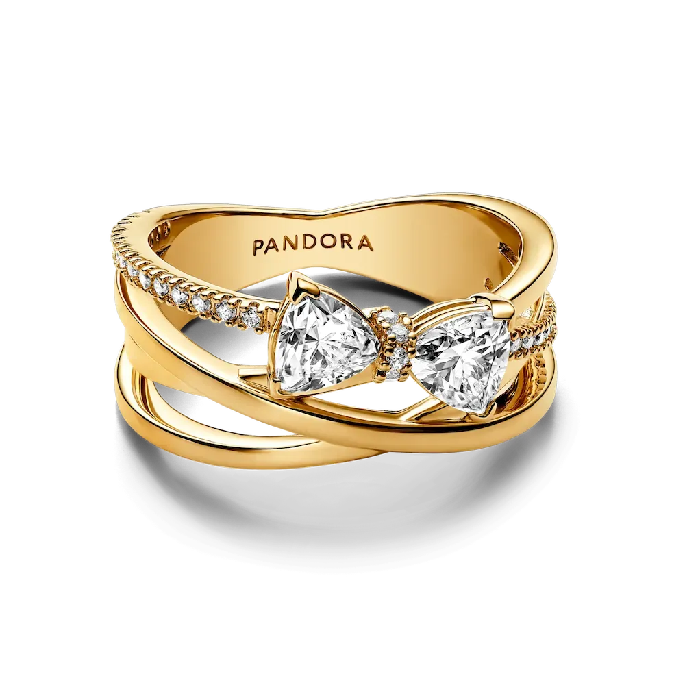Add sparkle and warm to any look with the Sparkling Bow & Crossover Band Ring, crafted from our 14k gold-plated unique metal blend. This statement piece features a sparkling bow motif surrounded by a pavé setting. The band features a crossover design with one row of sparkle and three polished lines. Perfect for special occasions and every day, this ring always adds something extra to an outfit.