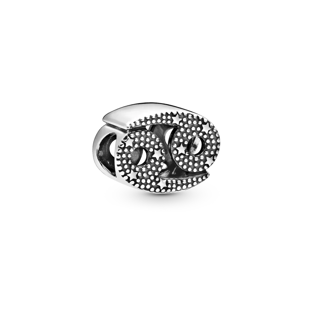 Let your Cancer pride shine with this sterling silver zodiac charm from the Pandora Moments collection featuring sparkling details. Cancers are traditionally known for being highly intuitive and their psychic abilities often manifest in tangible ways. The Cancer charm has two distinct sides, one polished with cubic zirconia dotted around and the other beaded with stars for that extra celestial touch. Wear as a reminder of your zodiac sign’s strengths or gift to the charm-loving Cancer in your life.