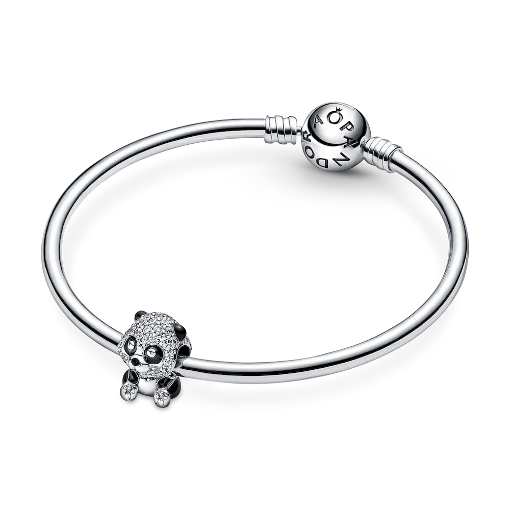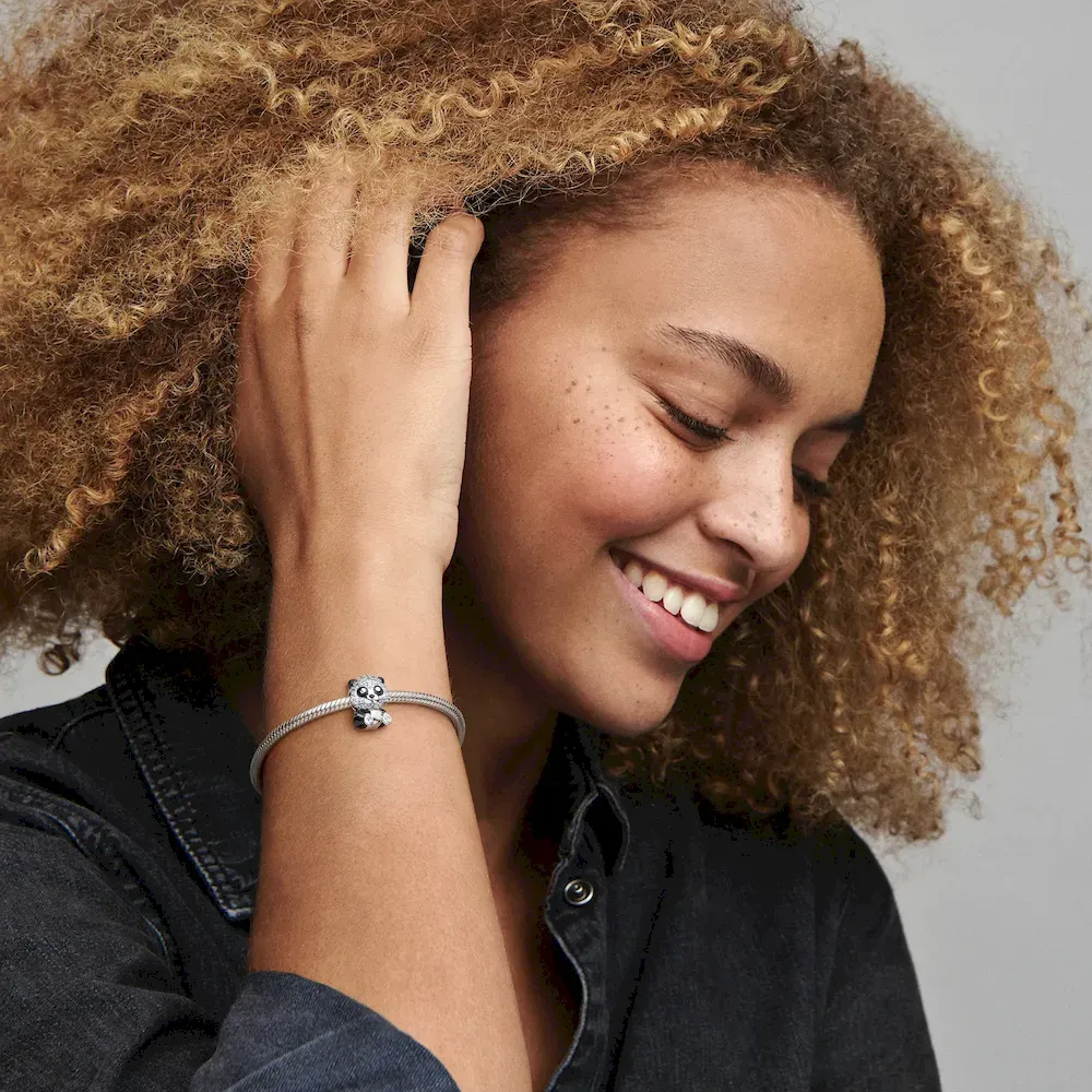 Reconnect with nature and welcome a new spring season with our Sparkling Cute Panda Charm. Inspired by the beloved Giant Panda, this symbol of power and wisdom sparkles in brilliant-cut clear cubic zirconia and shiny black enamel. The panda’s oversized head and tilted expression add an extra dose of personality to our cuddly friend. Wear our panda with other animal charms as a reminder to stay wild at heart.