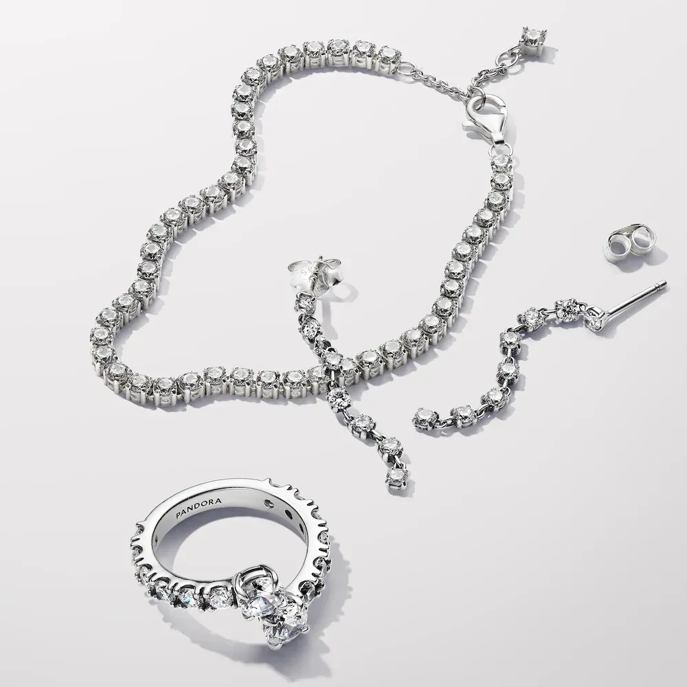 Frame your face with our Sparkling Eight Stones Drop Earrings. Crafted in sterling silver, these earrings feature a row of 8 clear cubic zirconia stones, elegantly dangling in pairs. The unique design allows for versatile styling, while heart-shaped butterfly backs ensure a secure fit. Express yourself with this delicate, sparkling pair — perfect for adding a touch of glamour to any occasion. Sold as a pair, these sterling silver drop earrings are a staple for your jewelry collection.