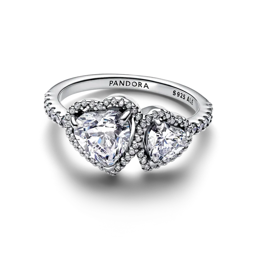 Sparkling Halo Hearts Ring Set