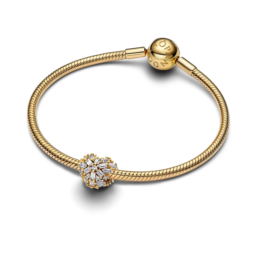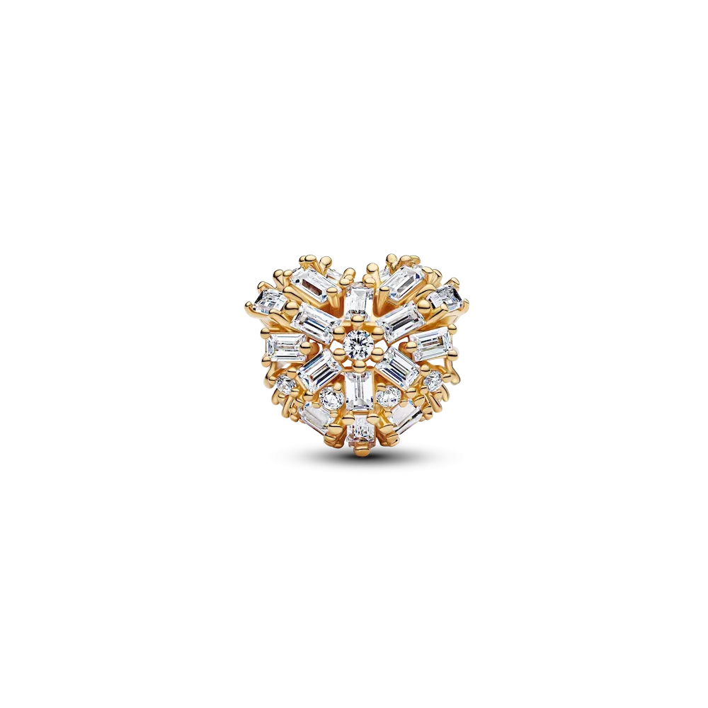 Let your love shine bright. Crafted in 14k gold plating, this sparkling charm features clear cubic zirconia forming a heart that catches the light from every angle — a timeless symbol of warmth and kindness.