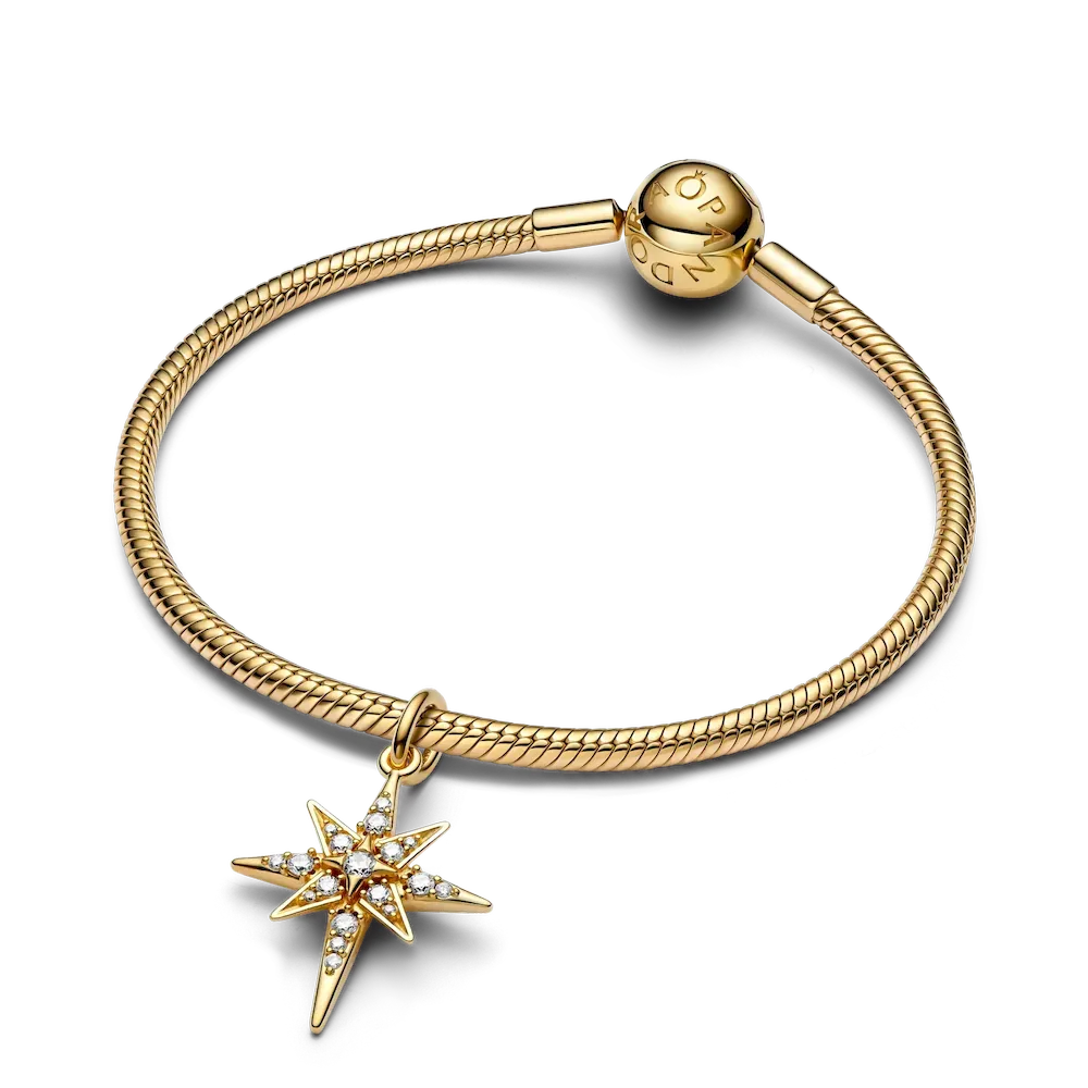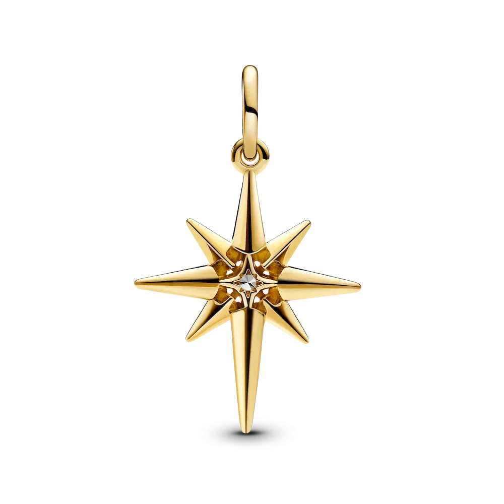 Be guided by the light and carry your own celestial compass with our Sparkling North Star Dangle Charm. Crafted in 14k gold plating, this charm features layers of sparkling stones and radiant metal to create dimension and catch more light. Add a touch of celestial symbolism to your stack or gift it to the star of your life.