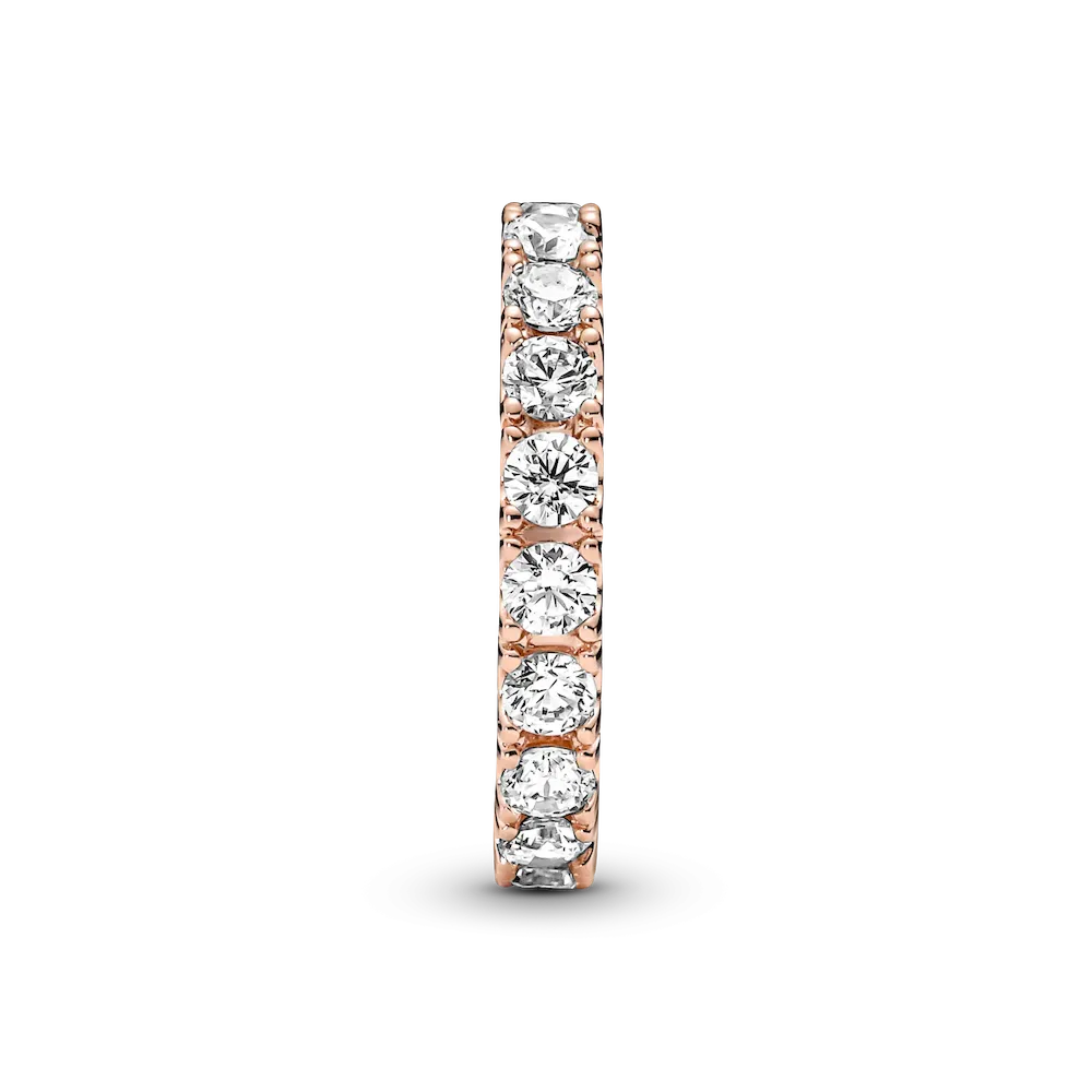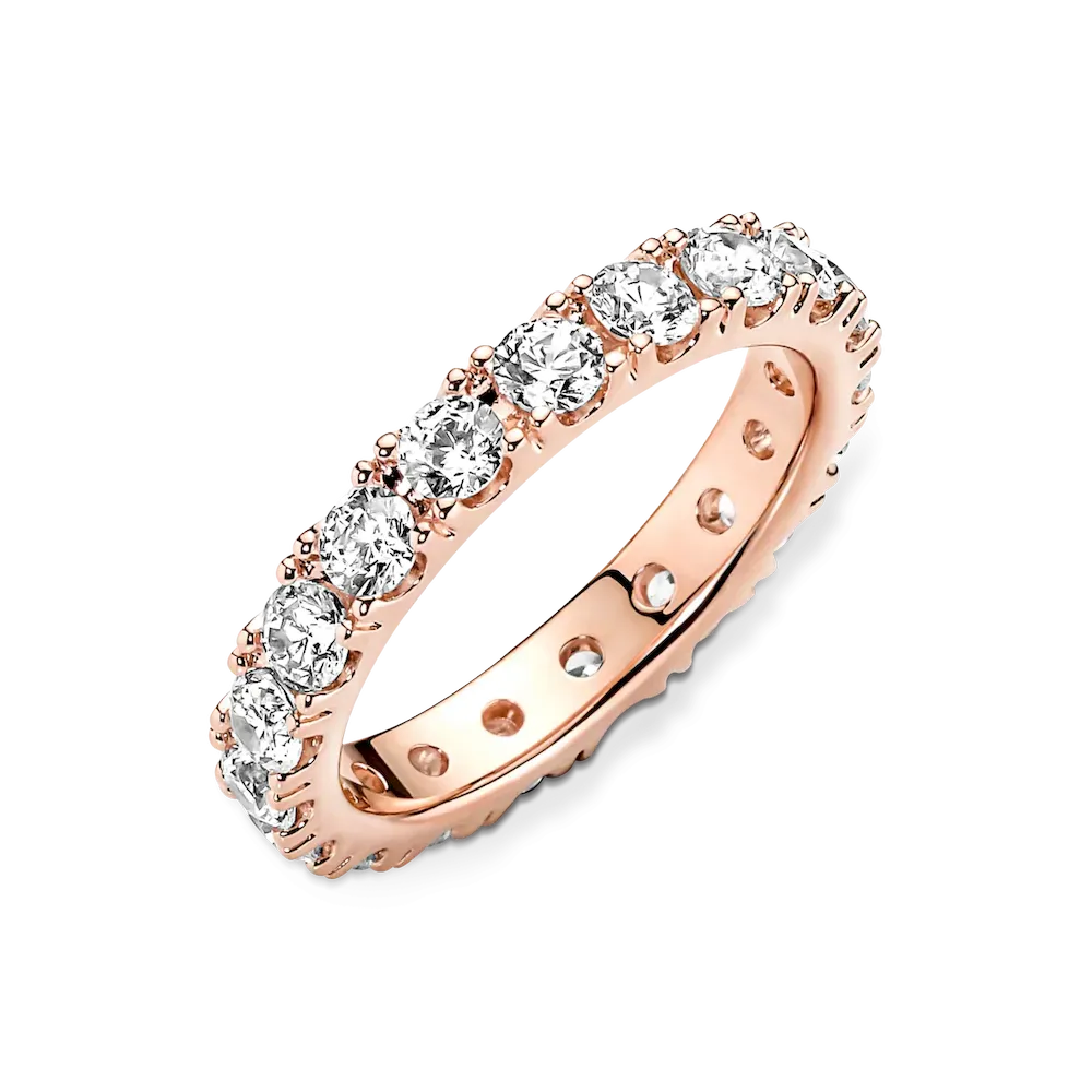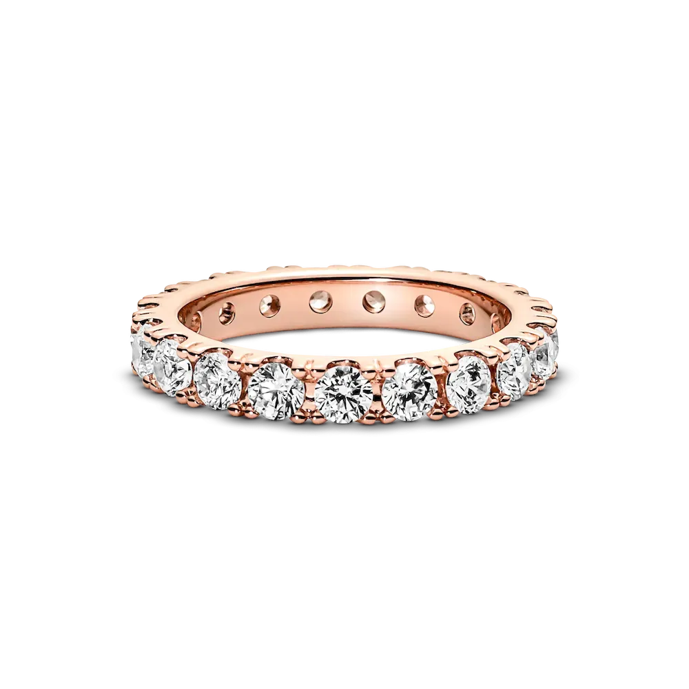 Make a classic statement with the Sparkling Row Eternity Ring. Hand-finished in our 14k rose gold-plated unique metal blend, this eternity ring features a band inlaid with sparkling clear man-made cubic zirconia. The design looks equally beautiful worn solo or stacked with other rings. Style it with bands in similar tones to create a monochromatic look or go for contrasting metals for a combination that pops. This ring is designed to be a wardrobe essential for years to come.