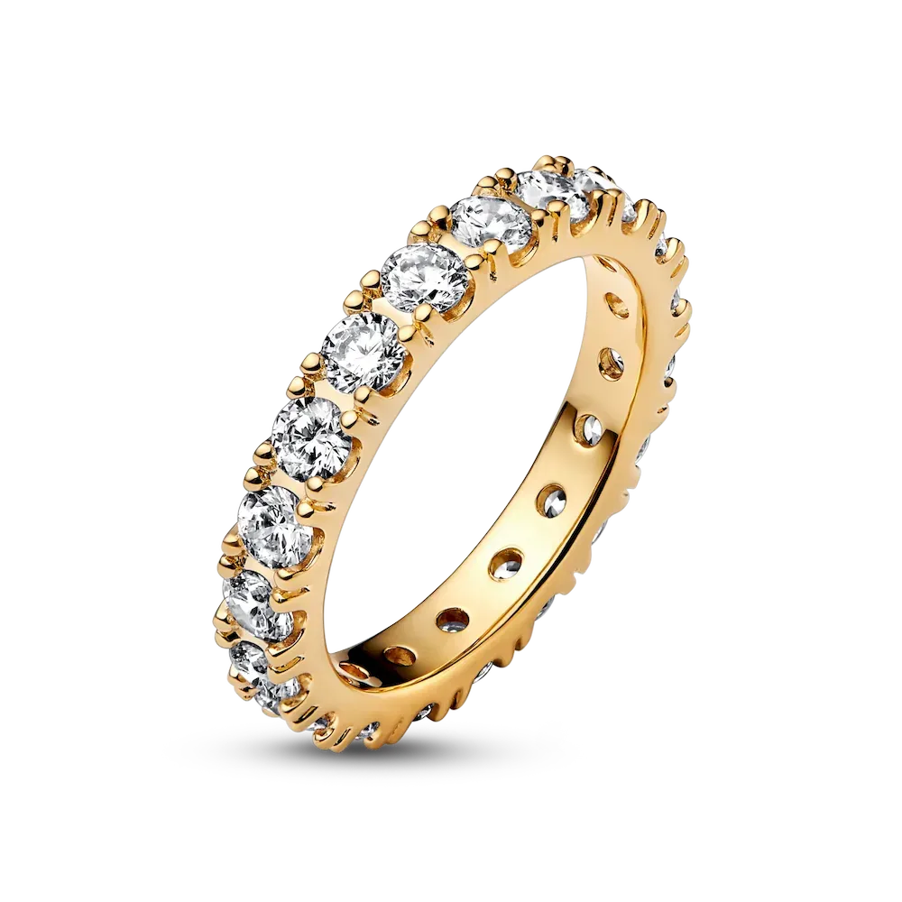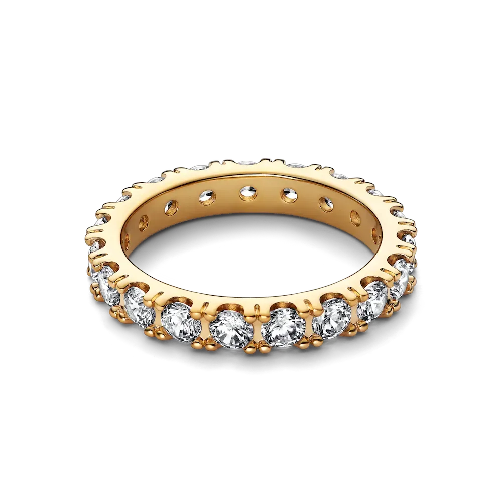 Make a classic statement with the Sparkling Row Eternity Ring. Hand-finished in 14k gold-plated sterling silver, this eternity ring features a band inlaid with sparkling clear cubic zirconia. The design looks equally beautiful worn solo or stacked with other rings. Style it with bands in similar tones to create a monochromatic look, or go for contrasting metals for a combination that pops. A classic silhouette with a modern interpretation, this ring is designed to be a wardrobe essential for years to come.