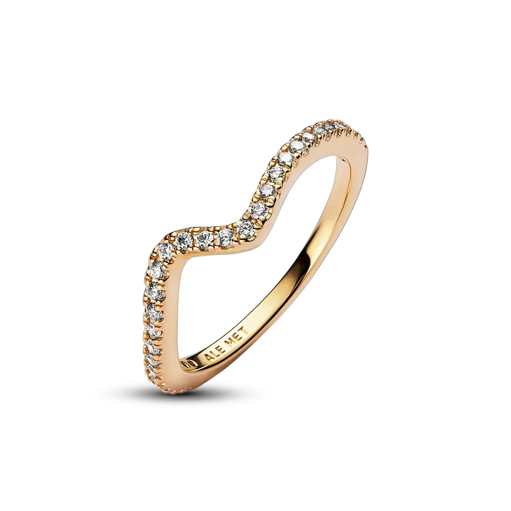 Hand-finished in 14k gold plating, our Sparkling Wave Ring curves to resemble the movement of a wave and features a row of round brilliant-cut clear cubic zirconia along its front. Wear it solo or stacked for a contemporary look you’ll love for years to come.