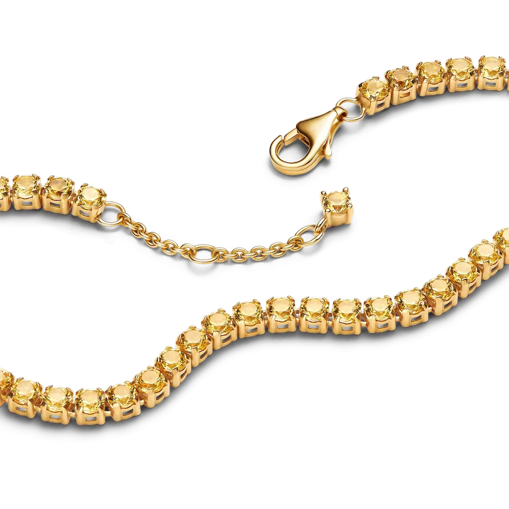 Add a touch of elegance to your look with a vibrant yellow crystal tennis bracelet. Perfect for everyday wear, this stylish piece is designed to make a statement.