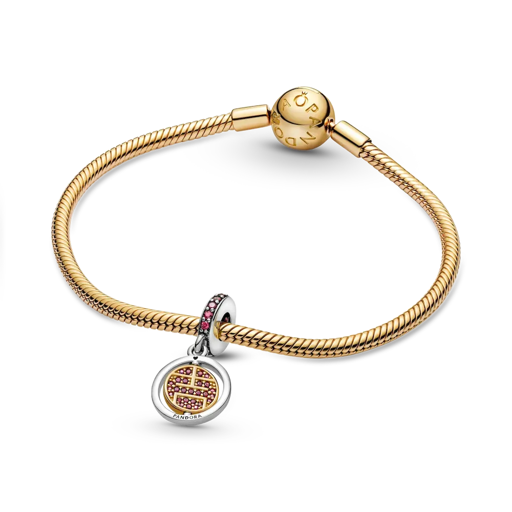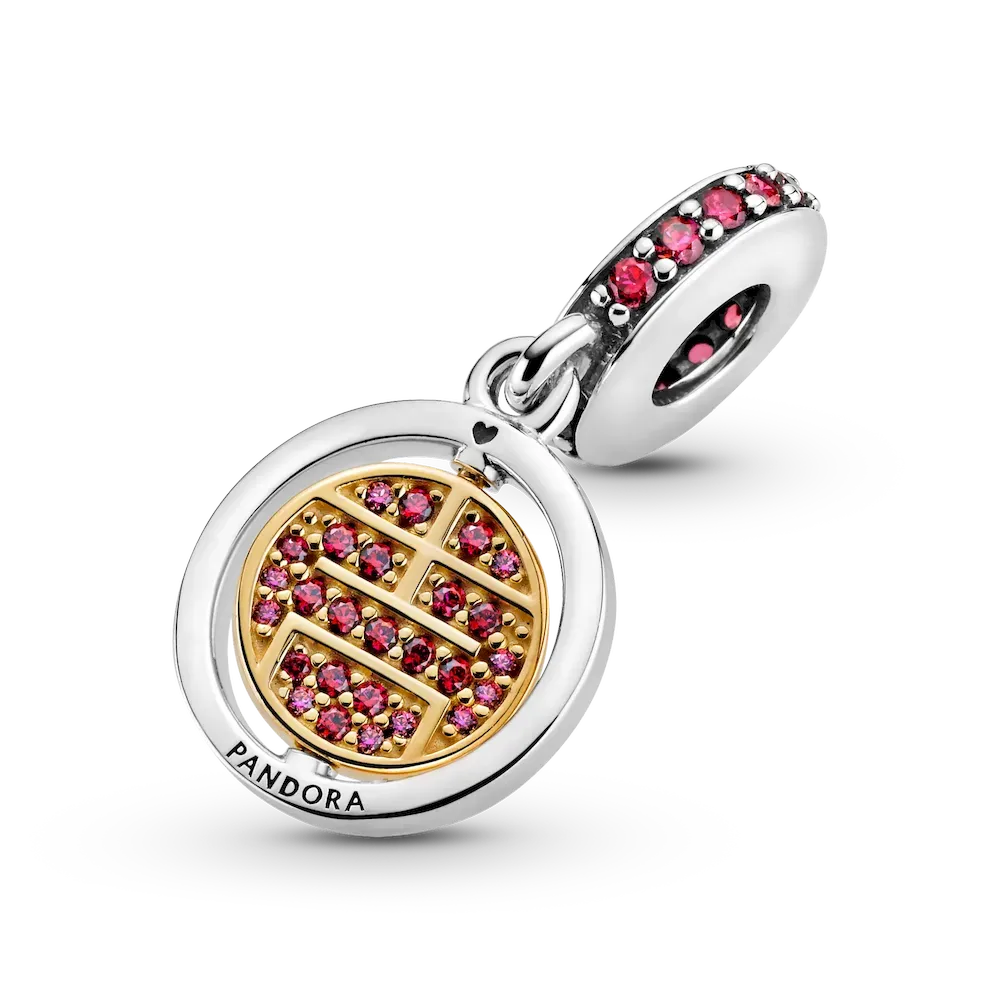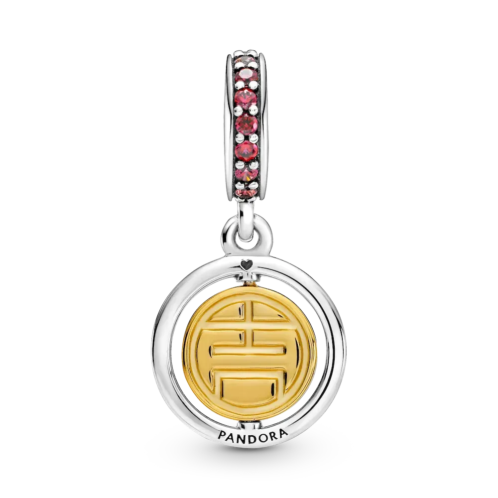 Celebrate Chinese New Year with the Spinning Lucky Dangle Charm. Hand-finished in sterling silver and 14k gold plating, this unique piece includes a spinning papercut-inspired disc in the centre. The Chinese character for