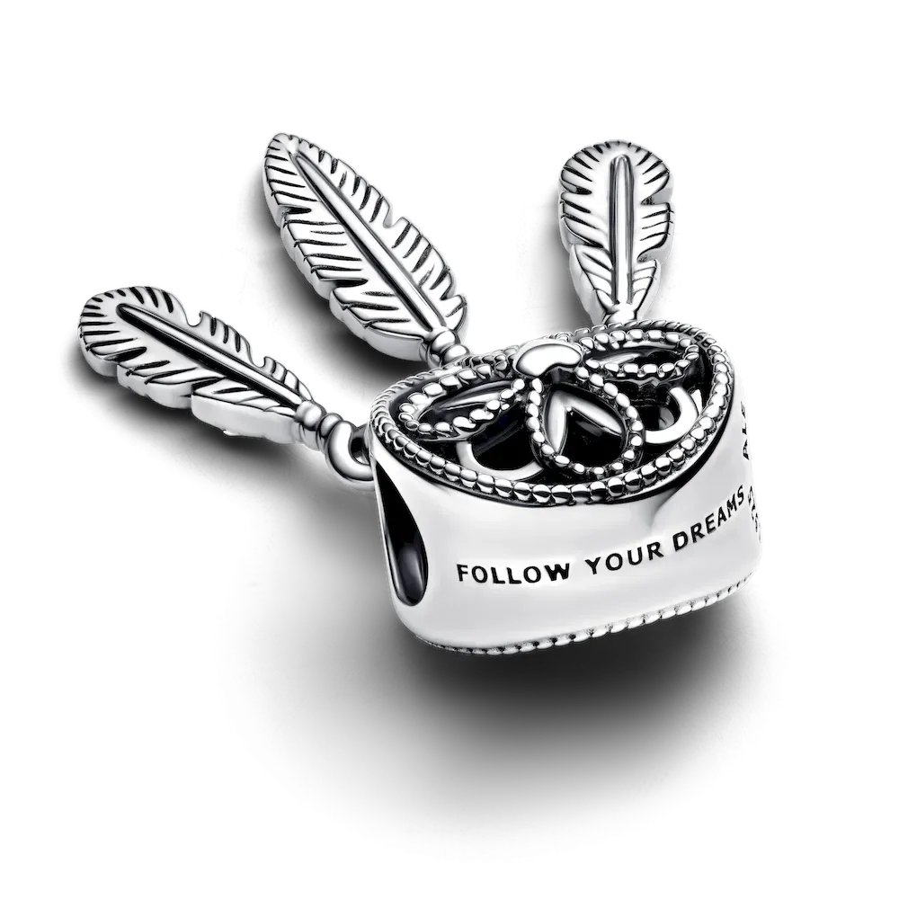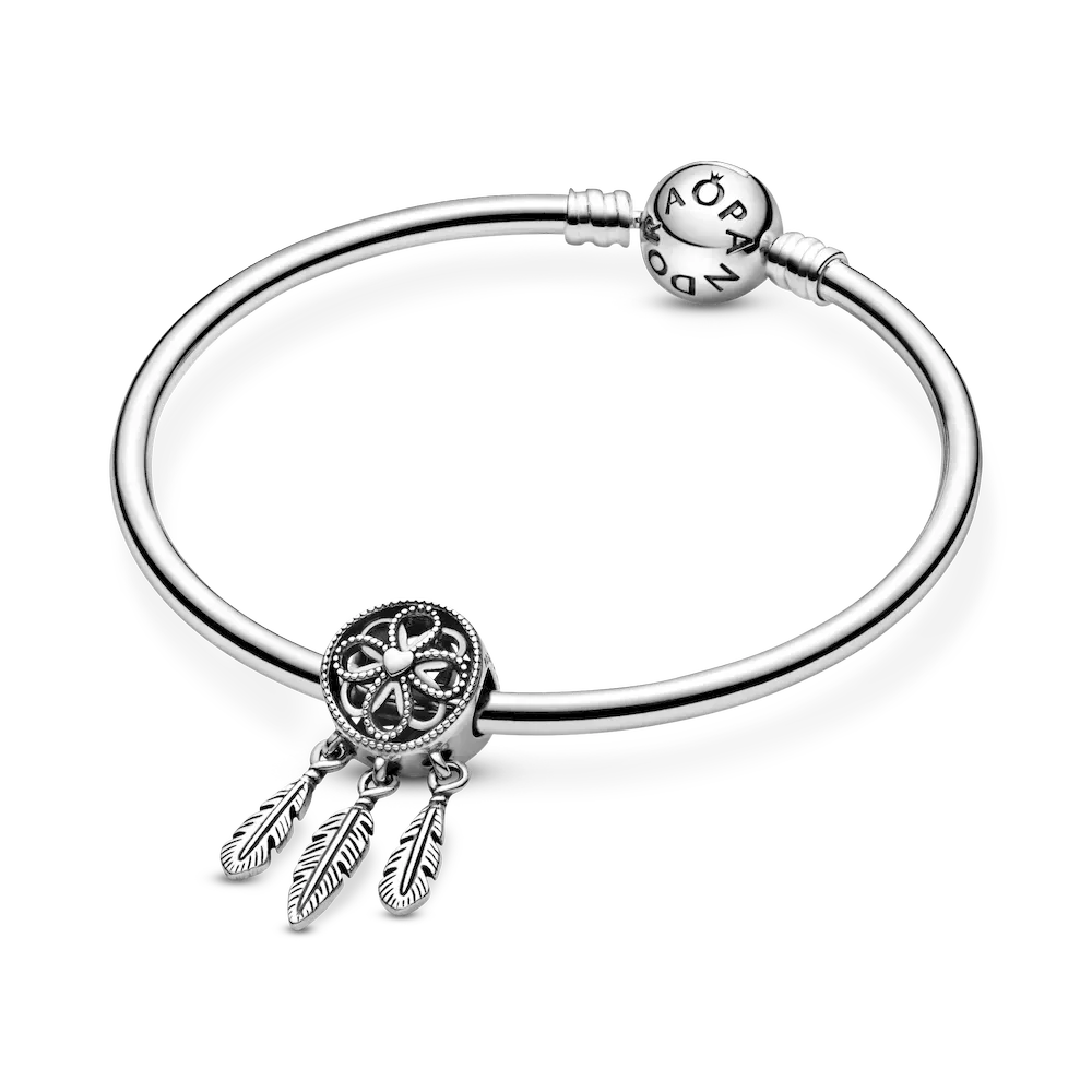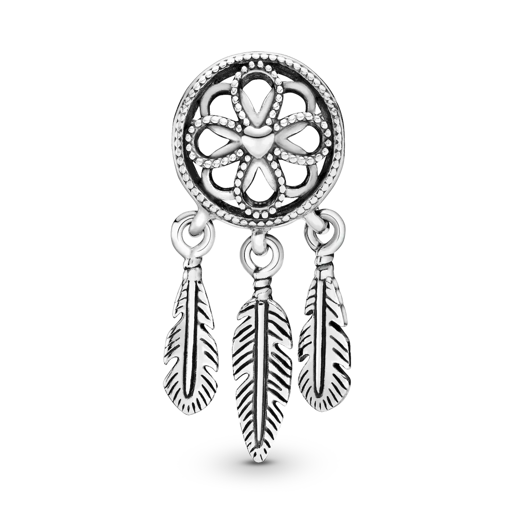 Wear a mix of personal sentiments and symbols with talismanic power on your Pandora Moments bracelet. Inspired by the Native American dream catcher, believed to trap bad dreams in its net while allowing peaceful dreams through, our sterling silver dangle is strung with pretty feathers for subtle movement. We can’t promise it will bring you sweet dreams, but we can assure you it’s perfect for every kind of dreamer.