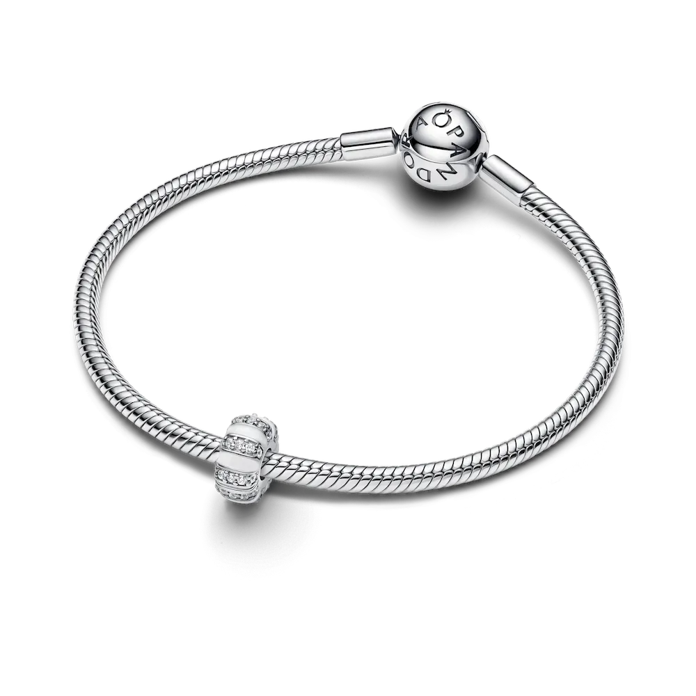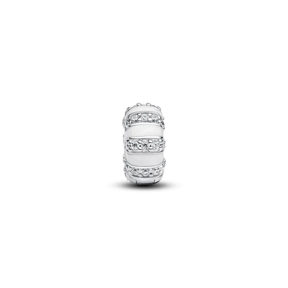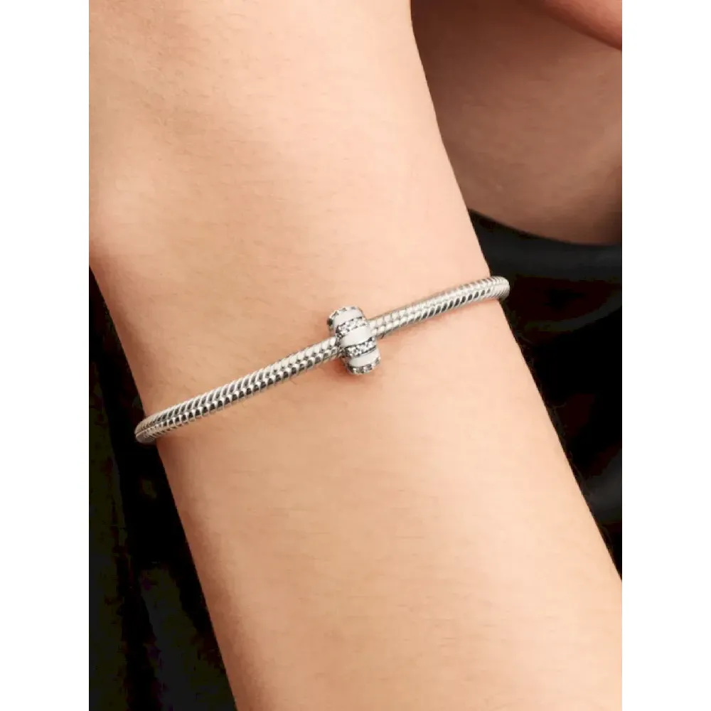 Your look will shine with the cool-toned Stones & Enamel Clip Charm. This sterling silver charm features alternating rows of sparkling stones and shimmering white enamel, which contrast intriguingly with the charm’s base, which also has a silicone grip inside the clip. The charm’s design was inspired by motifs of resilience and beauty –symbolizing the many possibilities you hold within you, much like the possibilities held within one small yet elegant and thoughtfully-made piece.