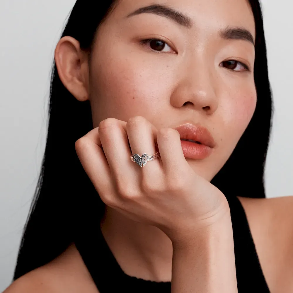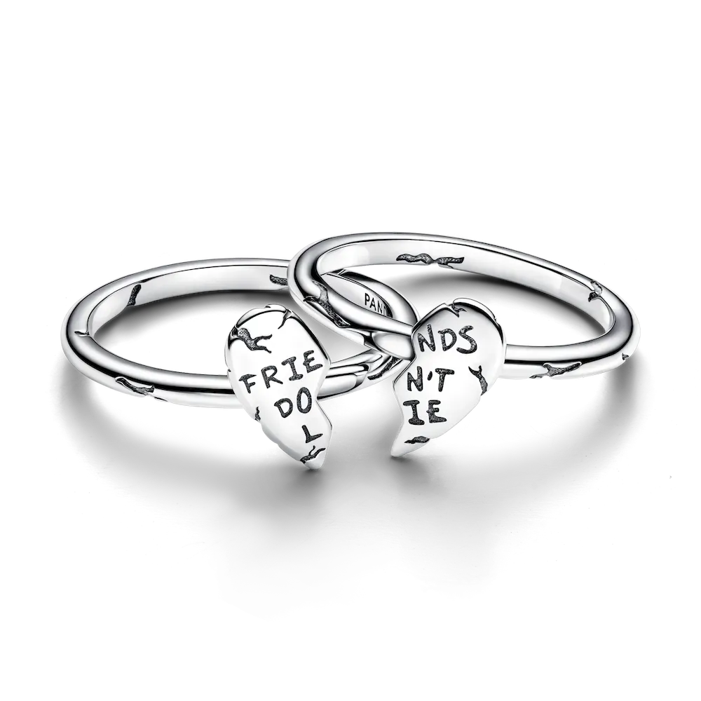 The Stranger Things Friends Don’t Lie Splittable Ring is crafted from sterling silver and features a heart motif that splits to reveal the engraving