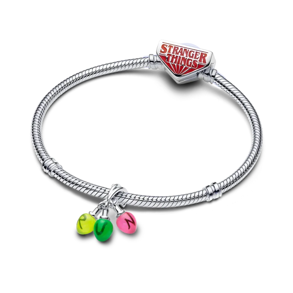 Light up the Upside Down with our Stranger Things Glow-in-the-dark Run Dangle Charm. Hand-painted enamel holiday lights glow in the dark, spelling out R-U-N, the iconic message used by Will Byers to communicate from the Upside Down. Gift it to the ultimate Stranger Things fan in your life or add it to your own collection – before they disappear!