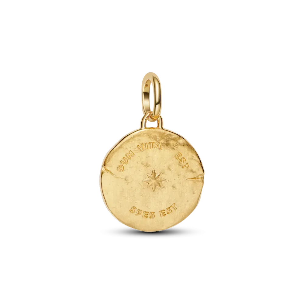 A symbol of strength. A promise of hope. This 14k gold-plated medallion features a swallow motif and the Latin inscription ‘DUM VITA EST SPES EST’ — a reminder that ‘WHERE THERE IS LIFE THERE IS HOPE’.