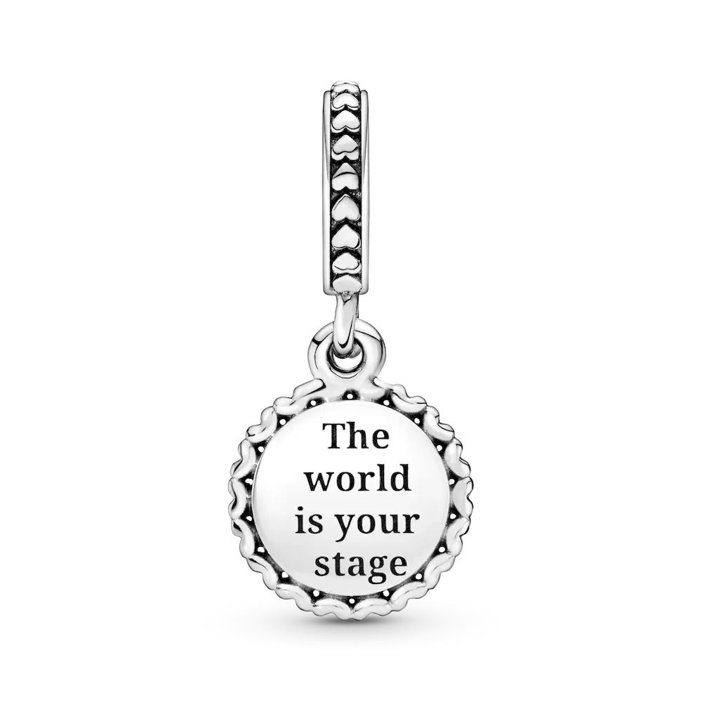 Get dramatic with the Theatre Masks Dangle Charm. Featuring two theatre masks in hand-applied black enamel on the front and the message