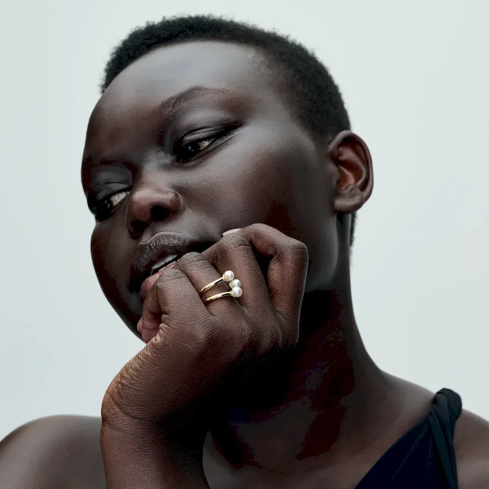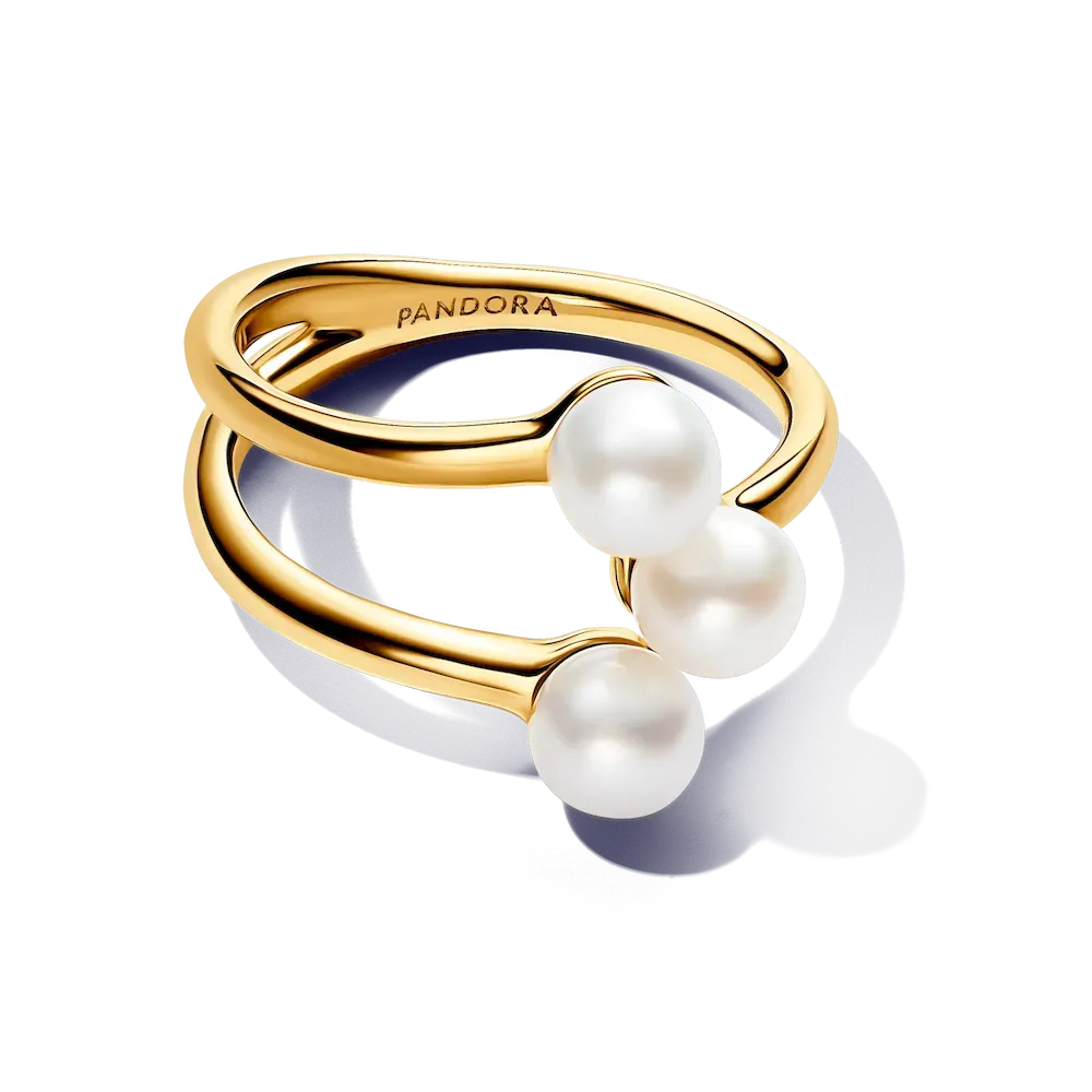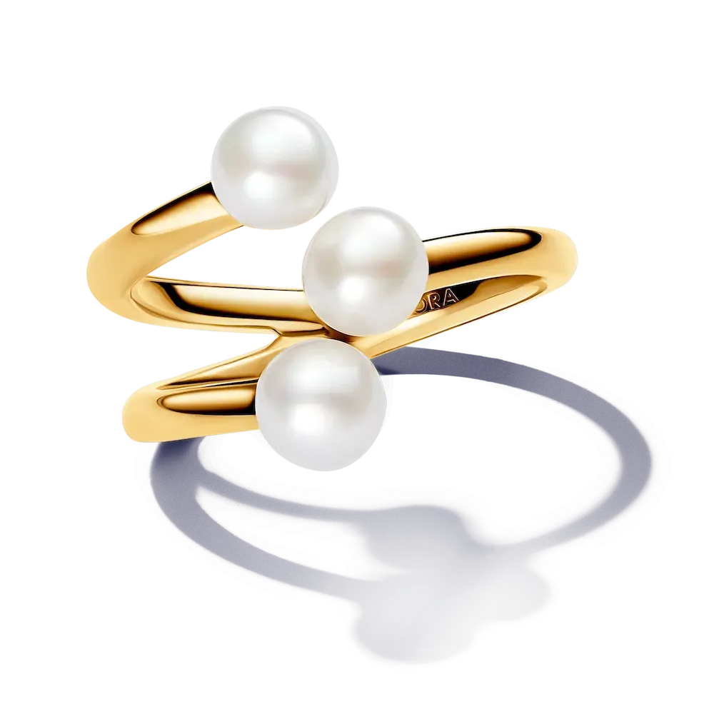 The Treated Freshwater Cultured Pearl Open Ring puts a fresh twist on a classic style. This 14k gold-plated ring splits into three separate bands with a treated freshwater cultured pearl at the end of each band. The ring is not adjustable for size and should not be opened, bent or squeezed. Each treated freshwater cultured pearl is unique and can vary in size and color; normal wear and tear may occur with this material. Our freshwater cultured pearls are treated with bleaching and luster enhancement.