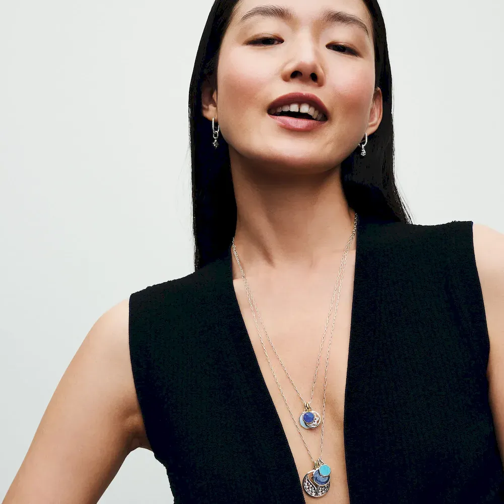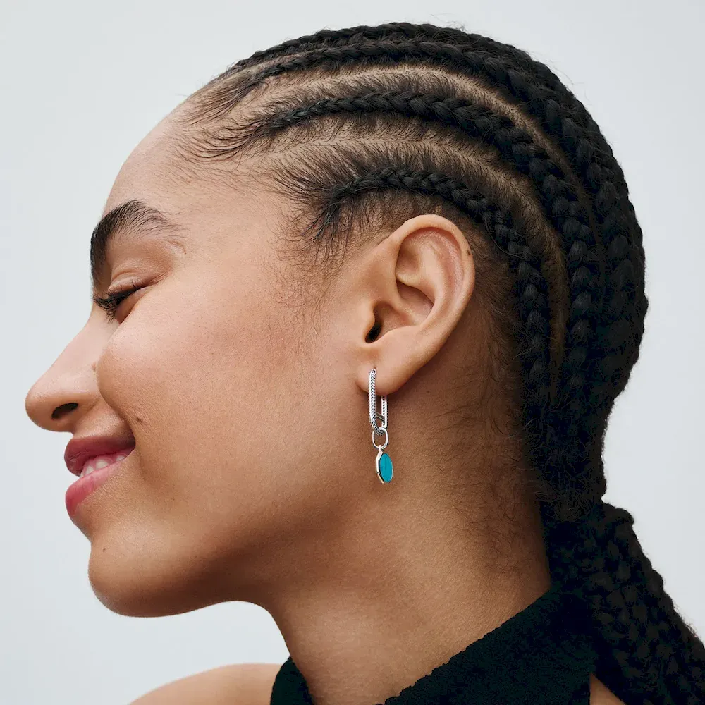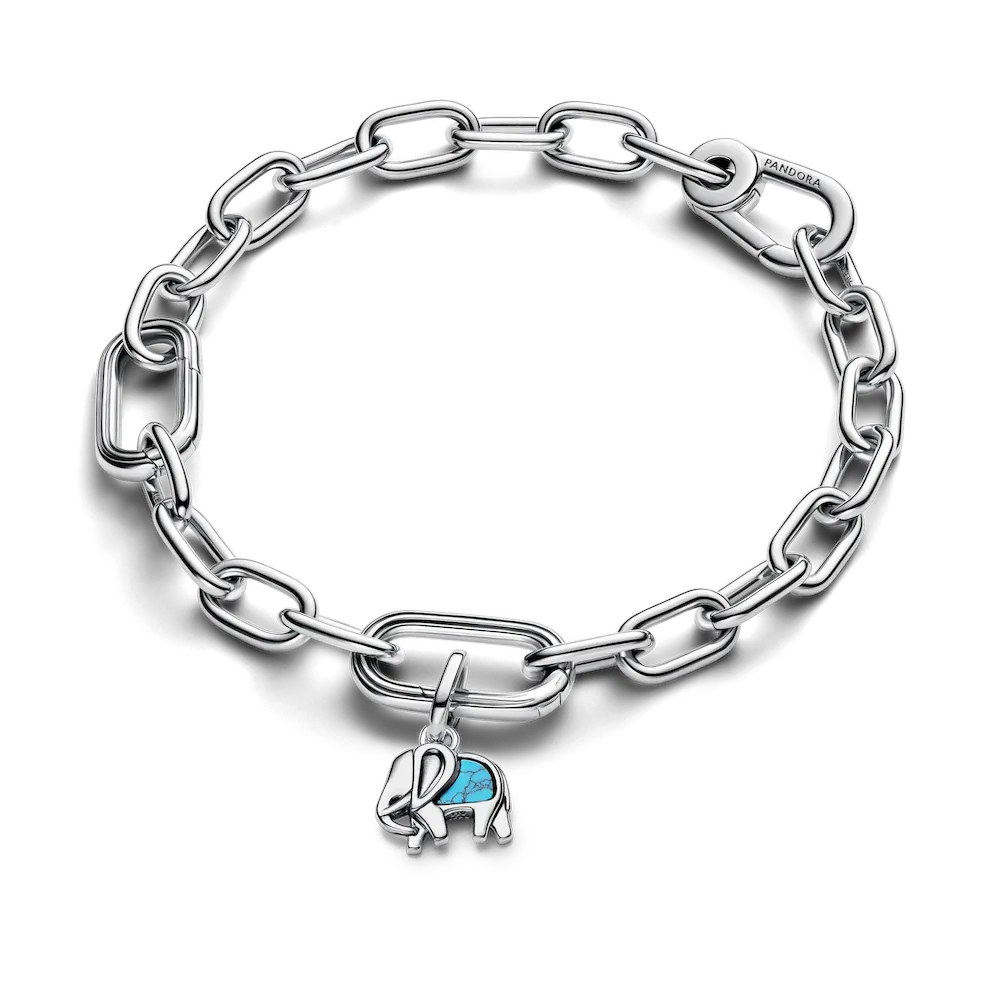 Wrap yourself in blues with a sterling silver bold link charm bracelet and three turquoise-colored charms � including a heart, elephant and engravable charm for a meaningful message.