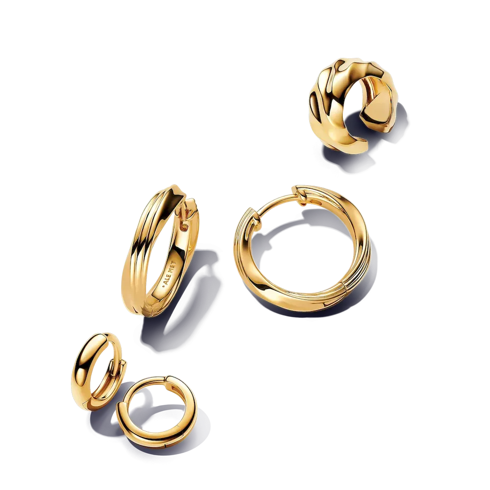 Give your stack a fresh twist with this earring set in 14k gold plating. Includes our Twisted Hoop Earrings, a pair of staple huggie earrings and a sculptural ear cuff for a golden stack.