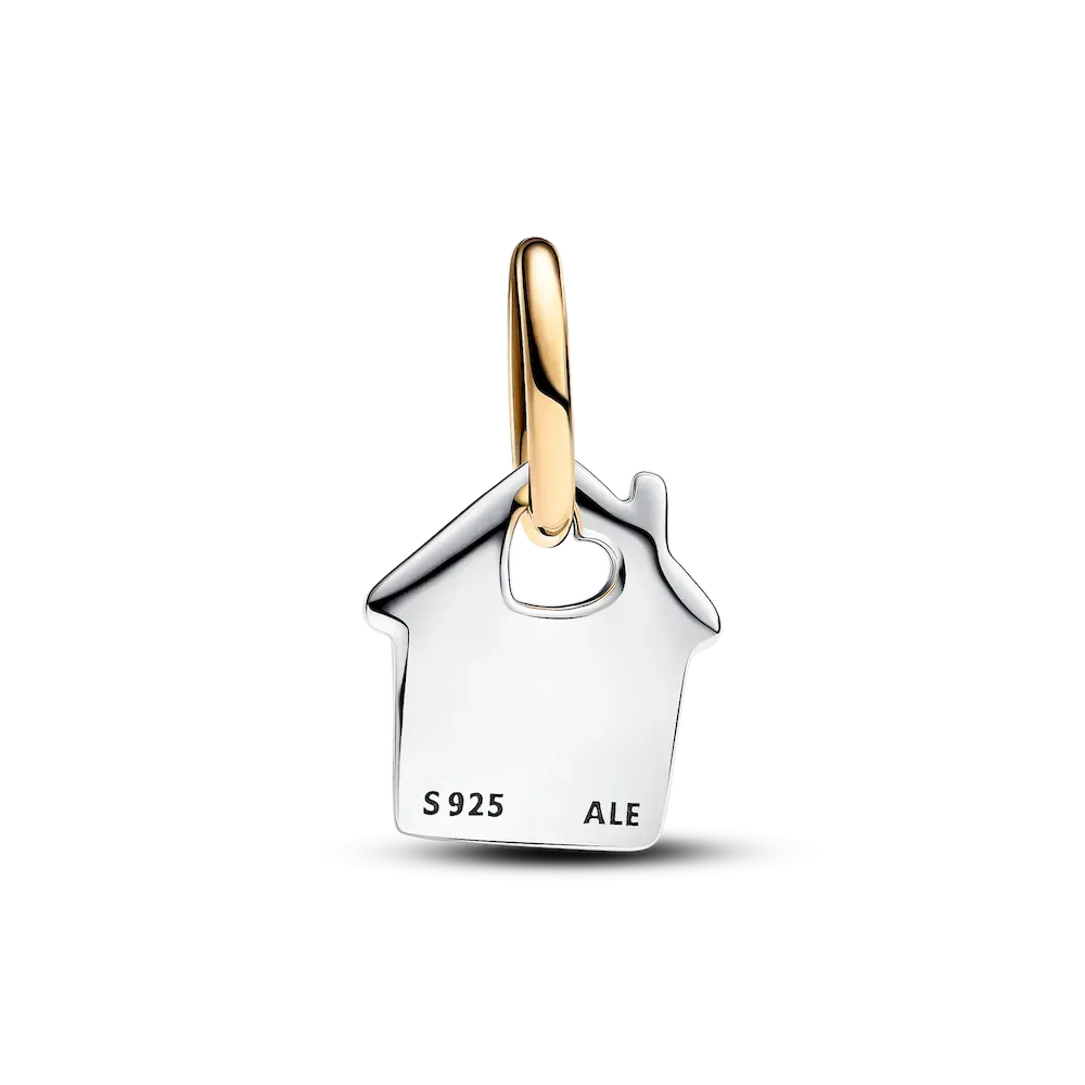 Carry the heart of family sentiment everywhere you go with our Two-tone Grandma’s House Dangle Charm. Keep your loved ones close with our grandma charm that captures the essence of home. With a two-tone finish, crafted in sterling silver and featuring a 14k gold plating, this charm features a house-shaped disc with a whimsical heart-shaped cut-out on the roof. One side is engraved with