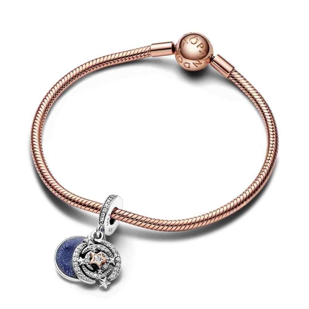 Wish upon a star with the Two-tone Shooting Star Double Dangle Charm. Crafted with both sterling silver and 14k rose gold-plated metal, this one’s sure to be a hit among lovers of two-tone charms. With a