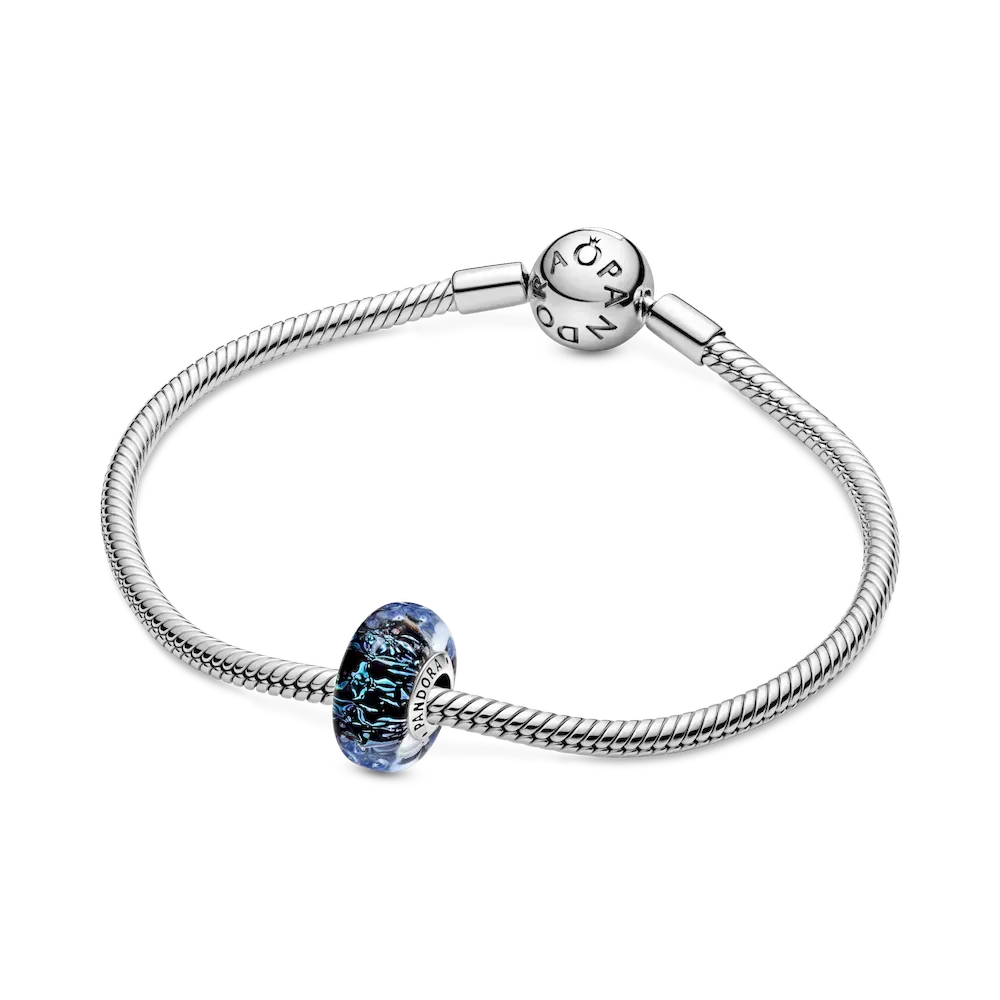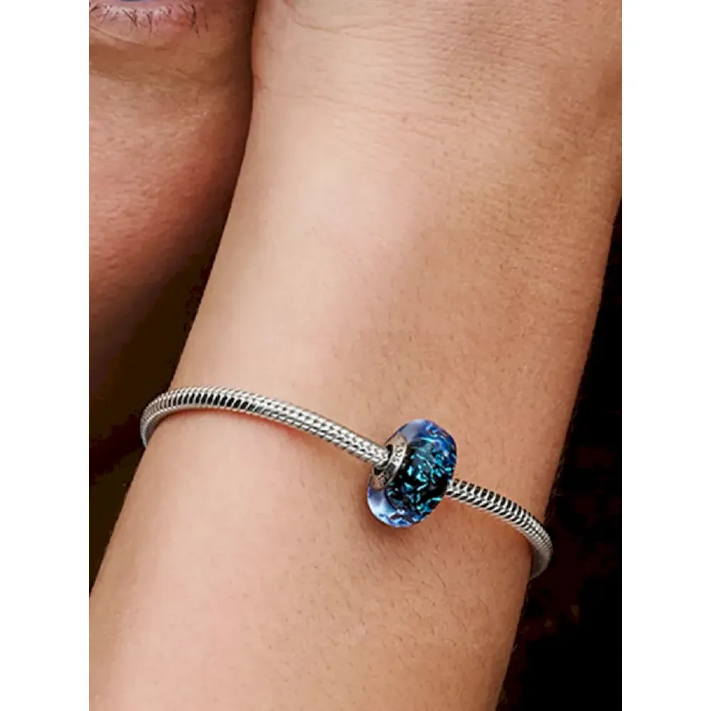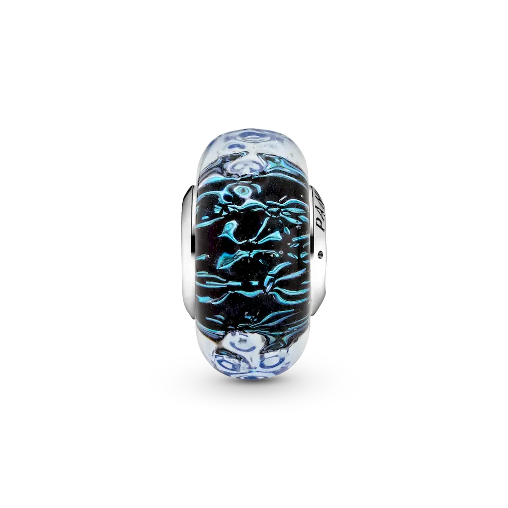 Get lost in the intricate patterns that are hidden inside the Wavy Dark Blue Murano Glass Ocean Charm. The ocean-inspired charm is hand-finished with iridescent and dark blue Murano glass infused with a sprinkling of glitter, wrapped around a sterling silver core. The blue charm finished with a wavy surface inspired by the waves of the ocean. Wear the wave charm to stay connected to the power of the ocean, no matter where in the world you are.