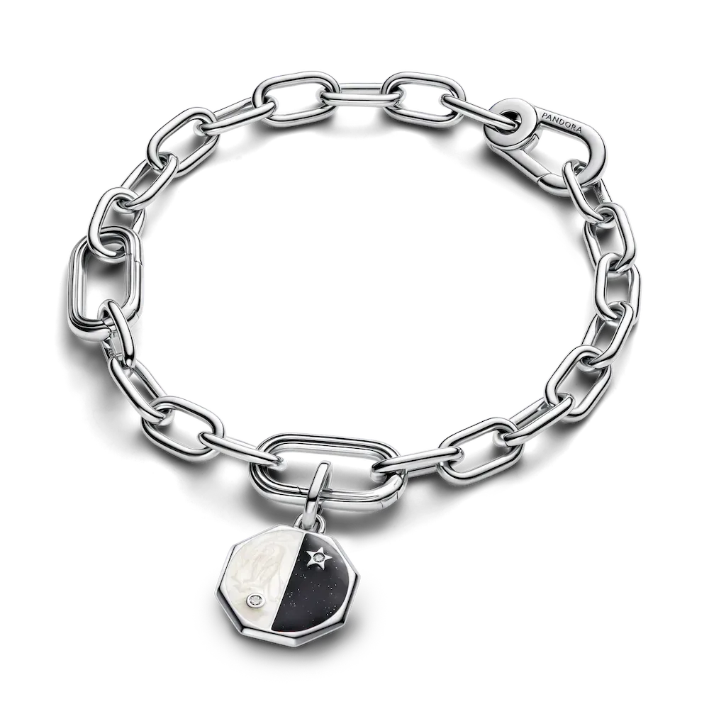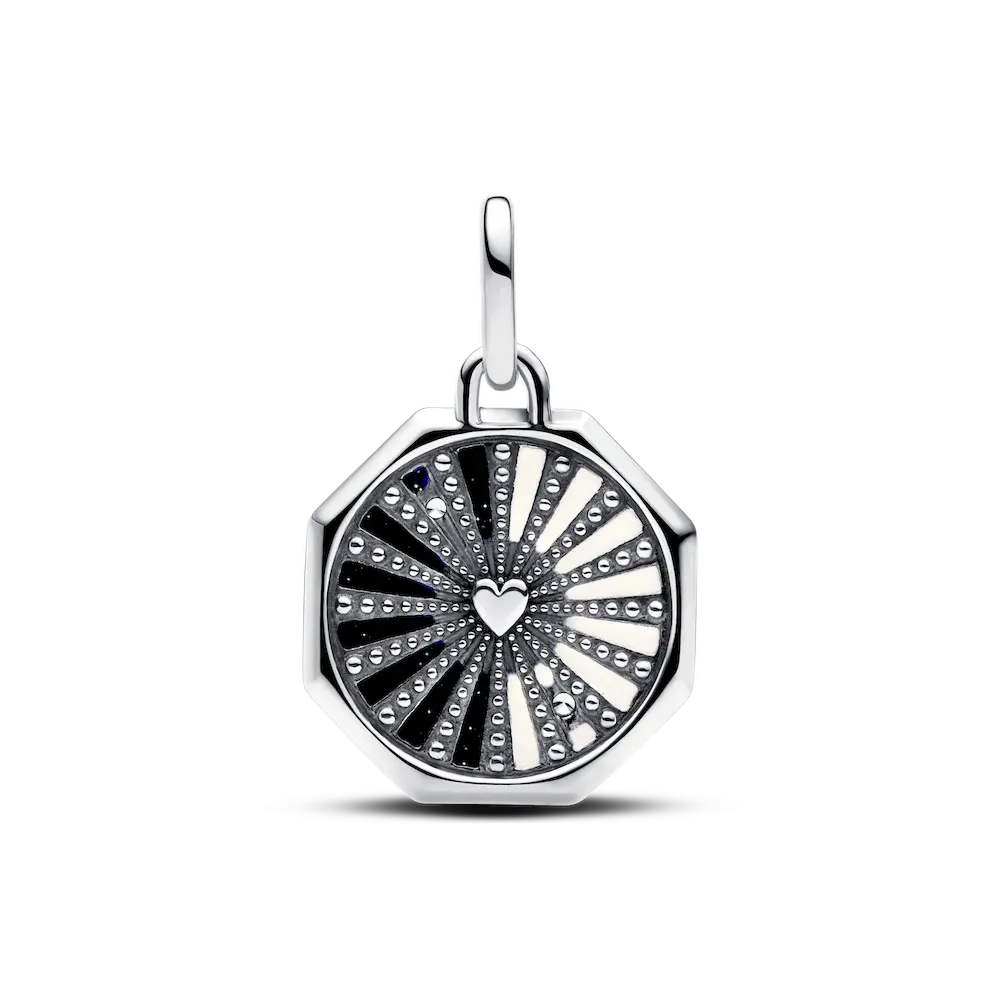 Opposites attract with our Yin and Yang Dangle Charm. On one side, white and black enamel set with symbolic stones represent the cycles of day and night. The other side features cut-out sunrays surrounding a central heart with sparkling microbeads. Carry it as a reminder that there’s balance and harmony in the universe.